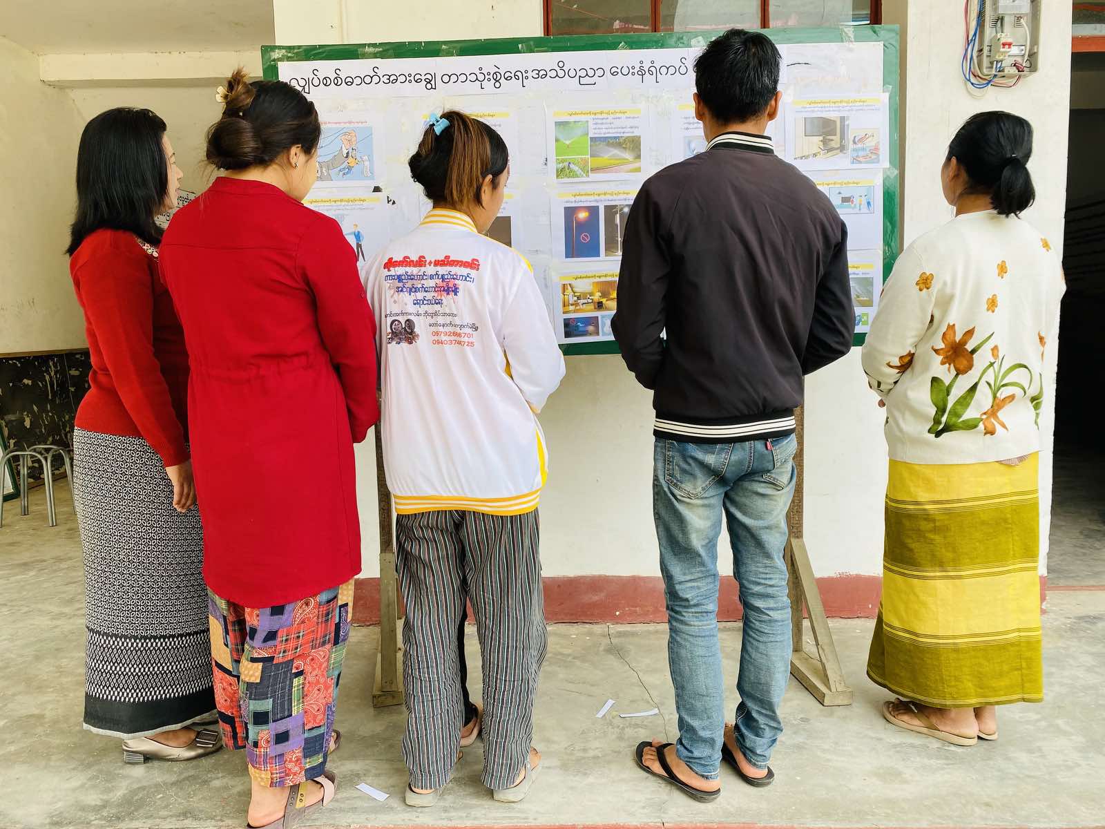 အဆိုပါ အသိပညာပေးနံရံကပ်စာစောင်တွင် လျှပ်စစ်ဓာတ်အားချွေတာသုံးစွဲနည်းများဖြစ်သော ညပိုင်းအိပ်စက်နေချိန်တွင် မလိုအပ်သော လျှပ်စစ်မီးသုံးစွဲမှုများကို ပိတ်ထားသင့်ကြောင်း၊ မိမိတို့ တစ်အိမ်လုံး မည်သူမျှမရှိသည့်အချိန်၊ အပြင်သွားသည့်အချိန်တွင် အိမ်တွင်းလျှပ်စစ်မီးများအားလုံးကို မီးခလုတ်ပိတ်ခဲ့ရန် လိုအပ်ကြောင်း၊ လက်တလော အသုံးမပြုသည့် လျှပ်စစ်ပစ္စည်းများ၏ ပလပ်ခေါင်းများကို မမေ့မလျော့ ဖြုတ်ထားကြရန်၊ မိမိနေအိမ်များရှိ လျှပ်စစ်သုံး မြက်ပင်ရေဖြန်းစက်များနှင့် ရေမော်တာစက်များကို လိုအပ်သလောက်သာ သုံးစွဲကြရန်နှင့် မိမိတို့မြို့နယ်/ကျေးရွာများ၏ လျှပ်စစ်ဓာတ်အားသုံး လမ်းမီးတိုင်များကိုလည်း နေရောင်ခြည်သုံး LED မီးစနစ်များကို အတတ်နိုင်ဆုံး ပြောင်းလဲအသုံးပြကြရန် ဒေသခံပြည်သူများအား လျှပ်စစ်ပစ္စည်းများ လိုအပ်သည်ထက် ပိုမိုသုံးစွဲ၍ ဖြစ်ပေါ်တတ်သော လျှပ်စစ်ဝါယာရှော့မီးအန္တရာယ်ကို ကြိုတင်ကာကွယ်နိုင်မည်ဖြစ်ပြီး မီတာခသက်သာရေးအတွက် လျှပ်စစ်ဓာတ်အားကို ချွေတာသုံးစွဲကြစေရန် ရုပ်ပြစာစောင်များဖြင့် နံရံကပ်ဘုတ်တွင် အသိပညာပေး ခင်းကျင်းပြသ ဆောင်ရွက်ထားပါသည်။ ထို့အတူ ဒေသခံပြည်သူ စာဖတ်ဝါသနာရှင်များနှင့် စာပေချစ်မြတ်နိုးသူများအား ဗဟုသုတပိုမိုတိုးတက်စေရေးနှင့် စာဖတ်ရှိန်မြင့်မားစေရန် စာအုပ်၊ စာစောင်၊ ဝတ္ထု၊ မဂ္ဂဇင်းနှင့် သုတရသစာပေများကို အခမဲ့ငှားရမ်းဖတ်ရှုနိုင်ရန်အတွက် ခင်းကျင်းပြသထားလျက်ရှိပြီး ပြည်သူ့စာကြည့်တိုက်သို့ လာရောက်ကြသော စာဖတ်ဝါသနာရှင် စာငှားများနှင့် ဒေသခံပြည်သူများက စိတ်ဝင်တစား လေ့လာကြည့်ရှုခဲ့ကြကြောင်း သိရှိရပါသည်။