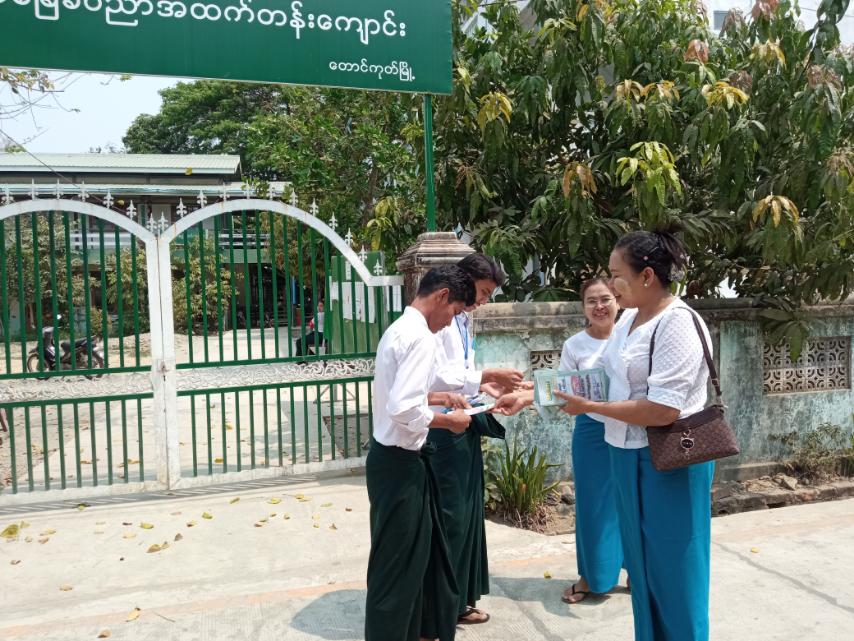 ရခိုင်ပြည်နယ်၊ တောင်ကုတ်မြို့နယ်၌ ၂၀၂၃ ခုနှစ်၊ မတ်လ(၂၇)ရက်နေ့တွင် ကျရောက်မည့် (၇၈)နှစ်မြောက် တပ်မတော်နေ့ အထိမ်းအမှတ် သတင်းစကားလက်ကမ်းစာစောင်များကို ပြန်ကြားရေးနှင့်ပြည်သူ့ဆက်ဆံရေးဦးစီးဌာန ဝန်ထမ်းများက အမှတ်(၄)၊ အခြေခံပညာအထက်တန်းကျောင်းတွင် ယမန်နေ့နေ့လယ် ၁၂ နာရီအချိန်က ဖြန့်ဝေပေးခဲ့ကြောင်း သိရသည်။