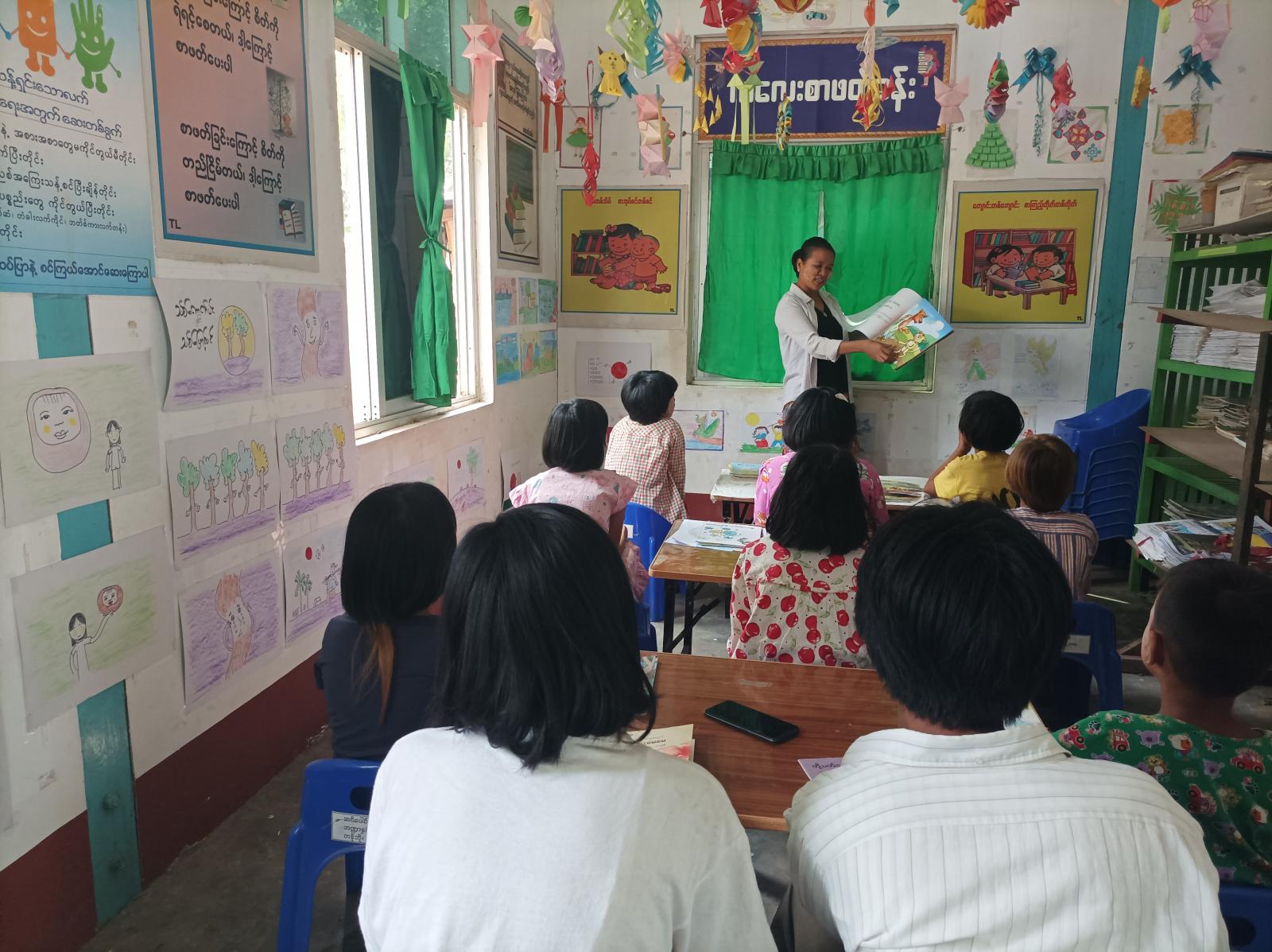 အဆိုပါ ကလေးစာဖတ်ခန်းတွင် ဆင်ပေါင်ဝဲမြို့နယ် ပြန်ကြားရေးနှင့်ပြည်သူ့ဆက်ဆံရေးဦးစီးဌာနမှ ဒုတိယဦးစီးမှူး ဒေါ်သုသုအေးက ကလေးများအား အားလုံးအတူစာအုပ်ထဲမှ အကြောင်းအရာများကို ပုံပြင်ပြောပြခဲ့ကြောင်း သိရသည်။