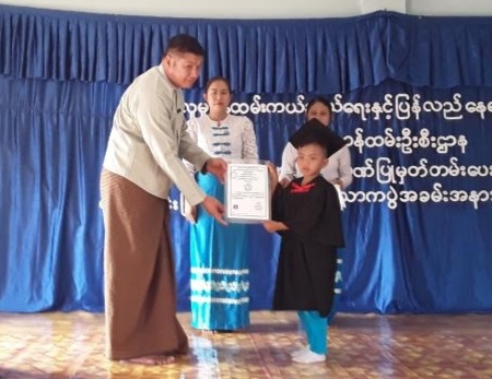 ဆက်လက်၍ မြို့နယ်အုပ်ချုပ်ရေးမှူးနှင့် တာဝန်ရှိသူများက ကျောင်းသား၊ ကျောင်းသူ (၁၅) ဦးအား ကျောင်းဆင်းဂုဏ်ပြုလက်မှတ်ကို ပေးအပ်ခဲ့ကြသည်။ ထို့နောက် ကျောင်းသား၊ ကျောင်းသူလေးများက ပဒေသာအကများဖြင့် သရုပ်ဖော်ကပြဖျော်ဖြေခဲ့ကြောင်း သိရသည်။