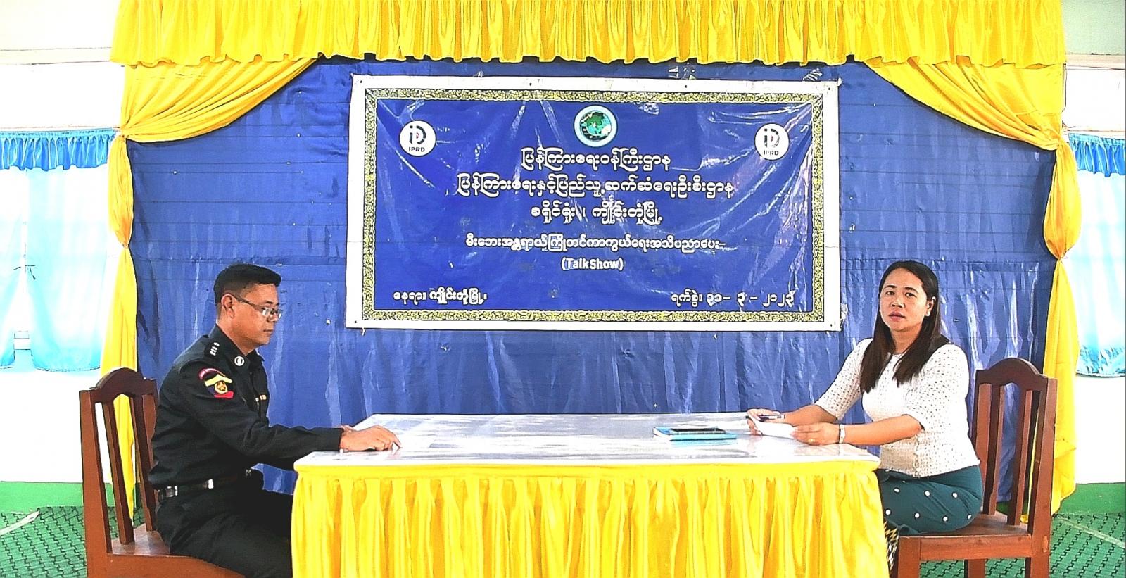 ရှမ်းပြည်နယ်(အရှေ့ပိုင်း)၊ ကျိုင်းတုံမြို့၌ မီးဘေးအန္တရာယ် ကြိုတင်ကာကွယ်ရေး Talk Show ဆွေးနွေးပွဲကို ယမန်နေ့ မွန်းလွဲ ၁ နာရီက ကျိုင်းတုံခရိုင် ပြန်ကြားရေးနှင့်ပြည်သူ့ဆက်ဆံရေးဦးစီးဌာနရှိ လူထုအခြေပြုဗဟိုဌာန Community Centre ခန်းမတွင် ကျင်းပပြုလုပ်သည်။