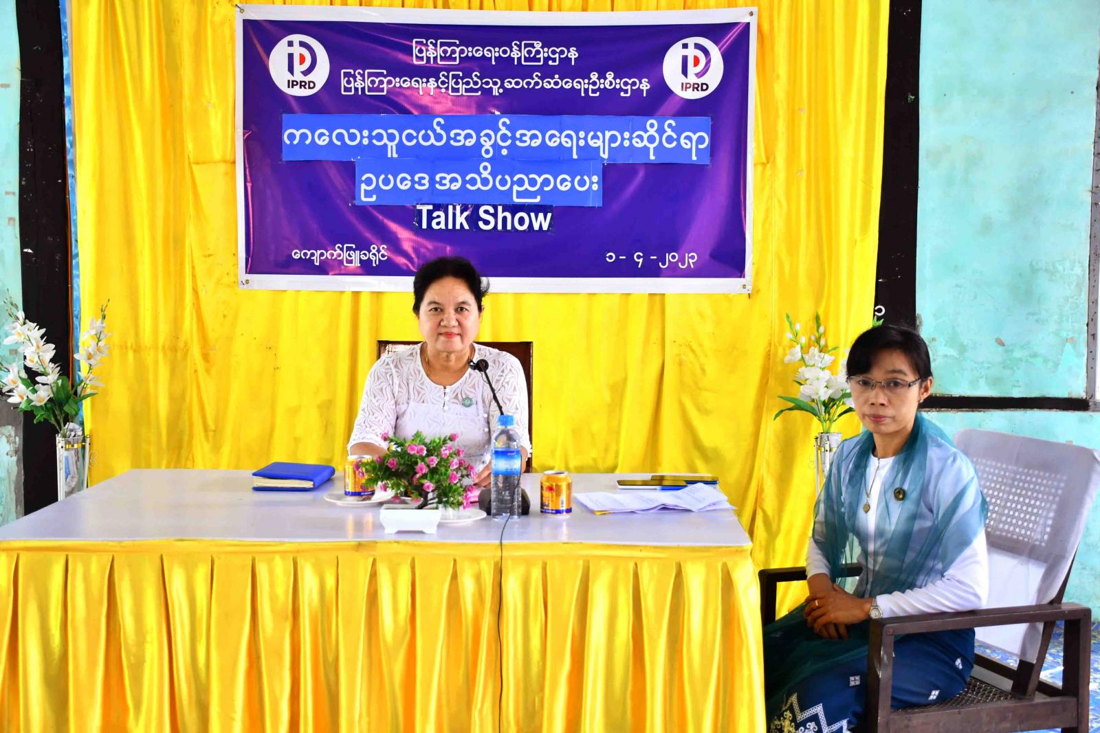 ရခိုင်ပြည်နယ်၊ ကျောက်ဖြူခရိုင်၊ ပြန်ကြားရေးနှင့်ပြည်သူ့ဆက်ဆံရေးဦးစီးဌာန၊Community Centre ခန်းမ၌ ယမန်နေ့နံနက်ပိုင်းက ပြန်ကြားရေးနှင့်ပြည်သူ့ဆက်ဆံရေးဦးစီးဌာနနှင့် လူမှုဝန်ထမ်းဦးစီးဌာနတို့ ပူးပေါင်း၍ ကလေးသူငယ်အခွင့်အရေးများဆိုင်ရာဉပဒေ အသိပညာပေး ဆွေးနွေးပွဲ Talk Show ကျင်းပပြုလုပ်သည်။