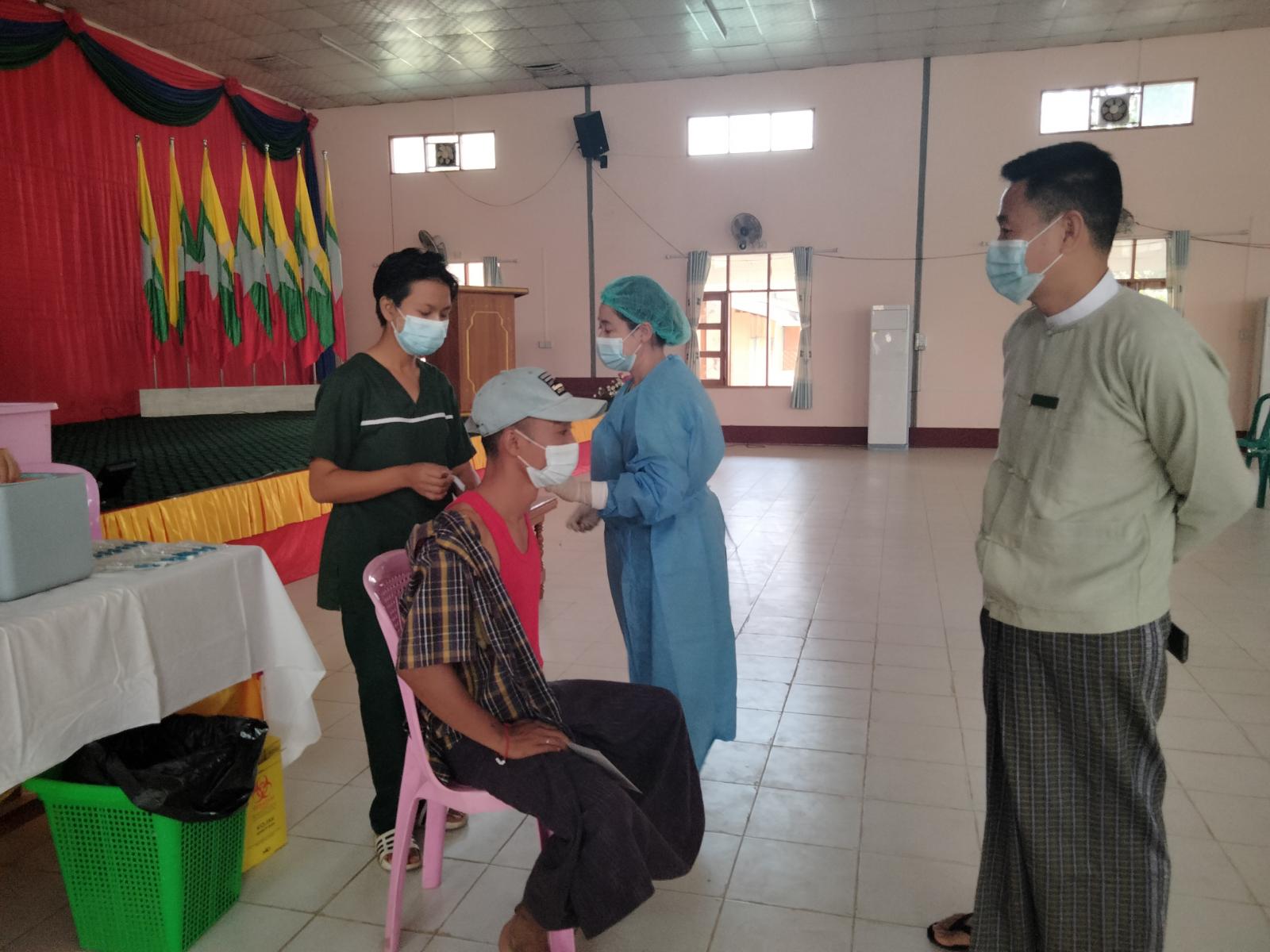 ကိုဗစ်-၁၉ အပိုဆောင်းကာကွယ်ဆေးထိုးနှံပေးခြင်းကို မြို့နယ်ကျန်းမာရေးဌာနမှ အထက်တန်းသူနာပြုဆရာမ ဒေါ်နန်းဝင်းကြည်နှင့် ကျန်းမာရေးဆရာမများ၊ ဝန်ထမ်းများ၊ မြို့နယ်အထွေထွေအုပ်ချုပ်ရေးဦးစီးဌာန၊ မြို့နယ်လူမှုဝန်ထမ်းဦးစီးဌာနဝန်ထမ်းများ ပူးပေါင်း၍ ဆောင်ရွက်ခြင်းဖြစ်ပြီး ကာကွယ်ဆေးမထိုးနှံမီ ကျန်းမာရေးဝန်ထမ်းများက ကျန်းမာရေးဆိုင်ရာ စစ်ဆေးမေးမြန်းမှုများပြုလုပ်ပြီးနောက် ခရိုင်/မြို့နယ်အဆင့် ဌာနဆိုင်ရာဝန်ထမ်းများနှင့် ဝန်ထမ်းမိသားစုများ စုစုပေါင်း ၁၉၇ ဦးတို့ကို ပထမအကြိမ်၊ ဒုတိယအကြိမ်နှင့် တတိယအကြိမ်အဖြစ် ကာကွယ်ဆေးထိုးနှံပေးခဲ့ကြောင်း သိရသည်။