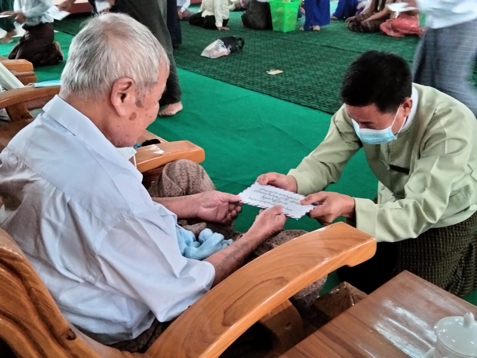 ထို့နောက် အဘိုးတစ်ဦးမှ ဆုတောင်းပဓာနာပြုစကားပြောကြားပြီးနောက် မြို့နယ်စီမံအုပ်ချုပ်ရေးအဖွဲ့မှ သက်ကြီးဘိုးဘွားများအား မုန့်၊ အချိုရည်များနှင့် ဧည့်ခံကျွေးမွေးခြင်းနှင့် ကျန်းမာရေးဌာနမှ ကျန်းမာရေးစောင့်ရှောက်မှုများ ဆောင်ရွက်ပေးခဲ့ကြောင်း သိရသည်။