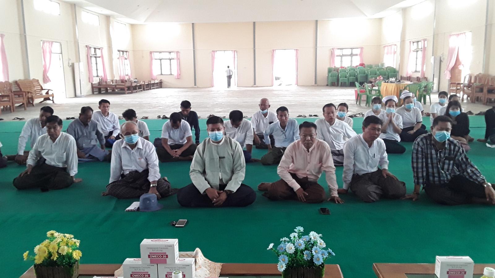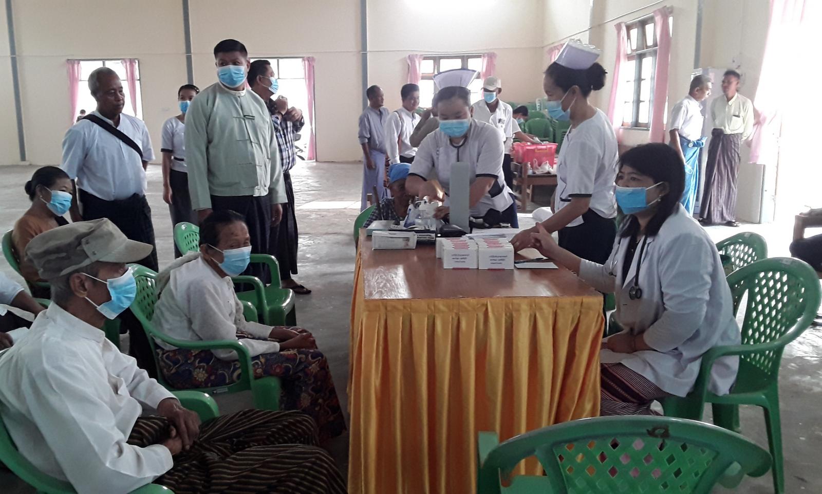 ရှေးဦးစွာ မြို့နယ်ကျန်းမာရေးဦးစီးဌာနမှ ဒေါက်တာအိဖြူသွယ်နှင့် ဝန်ထမ်းများက ကျန်းမာရေးစောင့်ရှောက်မှုအနေဖြင့် သွေးပေါင်ချိန်တိုင်းတာခြင်း၊ သွေးတိုး၊ ဆီးချိုစစ်ဆေးပေးခြင်းနှင့်ဆေးဝါးများ ထောက်ပံ့ပေးခြင်းတို့ကို ဆောင်ရွက်ပေးခဲ့ကြောင်း သိရသည်။