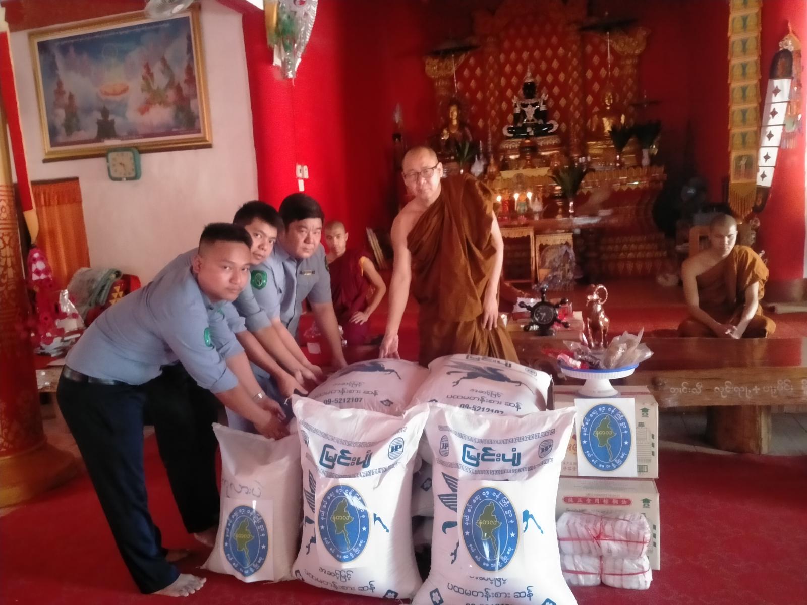 နယ်စပ်ရေးရာ၀န်ကြီးဌာနအနေဖြင့် ဘုန်းတော်ကြီးကျောင်းများသို့ ဆွမ်းဆန်တော်အခက်အခဲ မရှိစေရေး ဆန် (၁၀) အိတ်၊ ဆီဖာကြီး (၃) ဖာ၊ ဆား (၂) တွဲ၊ ကုလားပဲ (၇) ပိဿာ အမယ်လေးမျိုးတို့ကို ဆက်ကပ်လှူဒါန်းပေးခဲ့ကြောင်း သိရှိရသည်။