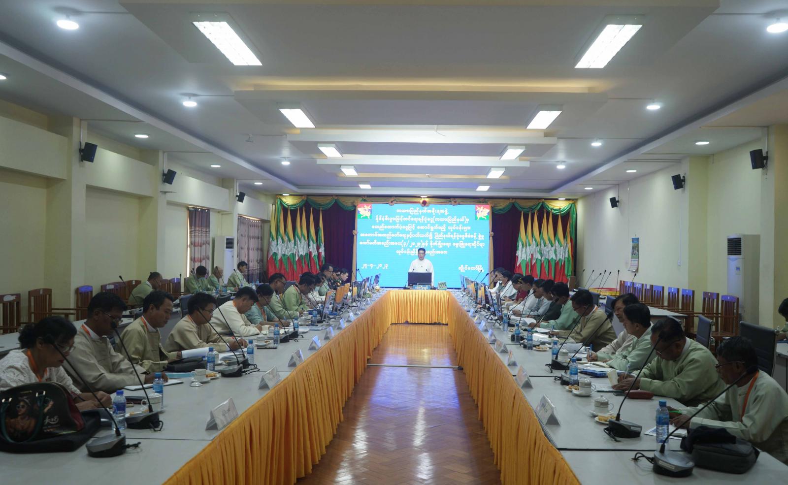 ထို့နောက် ဌာနဆိုင်ရာအသီးသီးက မိမိကဏ္ဍများအလိုက် ဆောင်ရွက်နေသည့် လုပ်ငန်းများ၊ ဆက်လက်ဆောင်ရွက်မည့် လုပ်ငန်းအစီအမံများကို Power Point ဖြင့်လည်းကောင်း ရှင်းလင်းဆွေးနွေးတင်ပြခဲ့ကြပြီး ပြည်နယ်အစိုးရအဖွဲ့ဝင်များက ဖြည့်စွက်ဆွေးနွေးခဲ့ကြသည်။