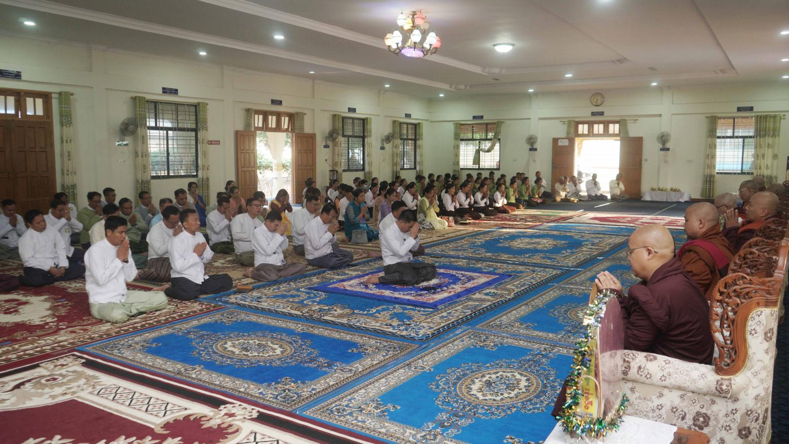 ဆက်လက်၍ အခမ်းအနားသို့ ကြွရောက်လာကြသည့် ဆရာတော်သံဃာတော်အရှင်သူမြတ်များ၊ ကယားပြည်နယ်အစိုးရအဖွဲ့၊ ပြည်နယ်ဝန်ကြီးချုပ် ဦးဇော်မျိုးတင်၊ ပြည်နယ်အစိုးရအဖွဲ့ဝင်၊ ပြည်နယ်ဝန်ကြီးများ၊ ဒေသကွပ်ကဲမှုစစ်ဌာနချုပ်(လွိုင်ကော်)၊ ဒေသကွပ်ကဲရေးမှူးနှင့် ဧည့်သည် တော်များက “နမောတဿ” သုံးကြိမ်ရွတ်ဆို ဘုရားကန်တော့၍ အခမ်းအနားကို ဖွင့်လှစ်ခဲ့ပြီး ပြည်နယ် သံဃနာယက အဖွဲ့ဥက္ကဋ္ဌ ကျောင်းထိုင်ဘုန်းကြီးသင်တန်းကျောင်း ဆရာတော်ဘဒ္ဒန္တပညာစက္က (အဂ္ဂမဟာသဒ္ဓမ္မဇောတိကဓဇ) အရှင်သူမြတ်ထံမှ ကိုးပါးသီလခံယူဆောက် တည်ခဲ့ကြသည်။