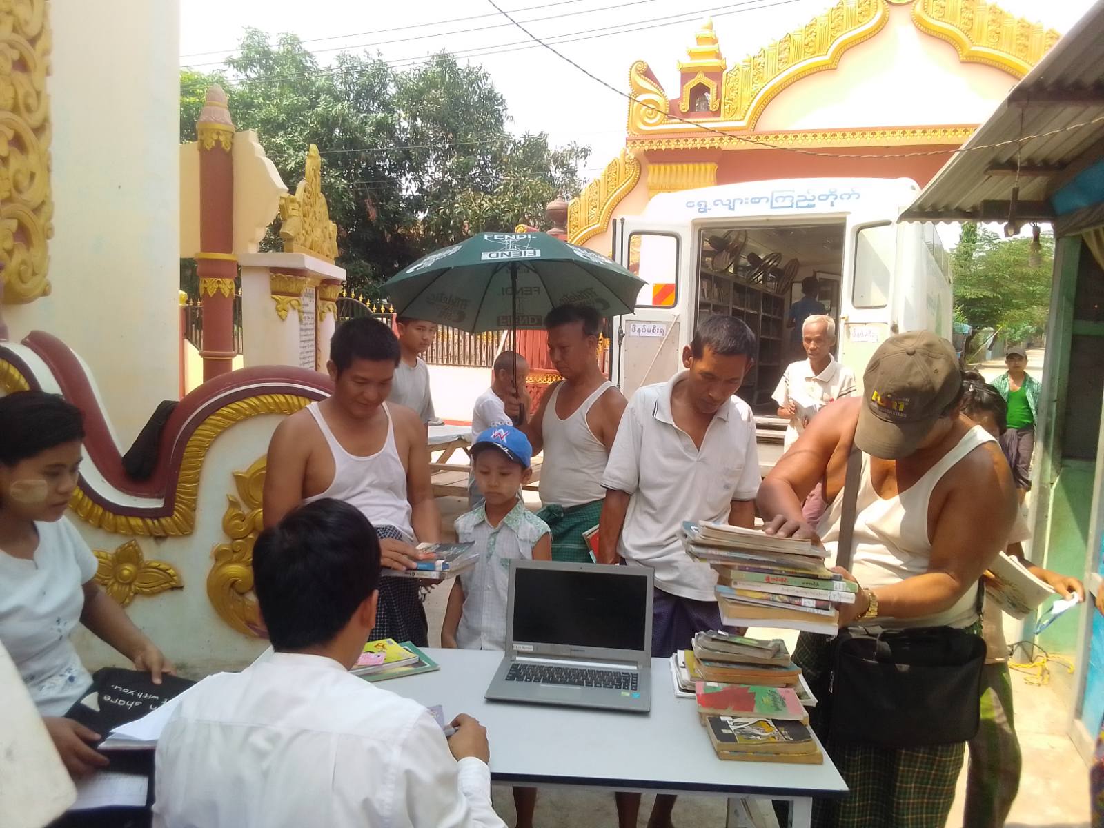 ပျဉ်းမနားမြို့နယ် ပြန်ကြားရေးနှင့်ပြည်သူ့ဆက်ဆံရေးဦးစီးဌာနမှ ရွေ့လျားစာကြည့်တိုက် မော်တော်ယာဉ်ဖြင့် စာဖတ်သူများ လက်ဝယ်အရောက် စာအုပ်များ လိုက်လံငှားရမ်းပေးမှုကို ရပ်ကွက်/ကျေးရွာများအရောက် လိုက်လံငှားရမ်းပေးနေလျက်ရှိရာ ယနေ့နံနက်ပိုင်းတွင် မြို့နယ်ရုံးဝန်ထမ်းများက သဲကျွန်းကျေးရွာ သို့ သွားရောက်ငှားရမ်းပေးကြသည်။