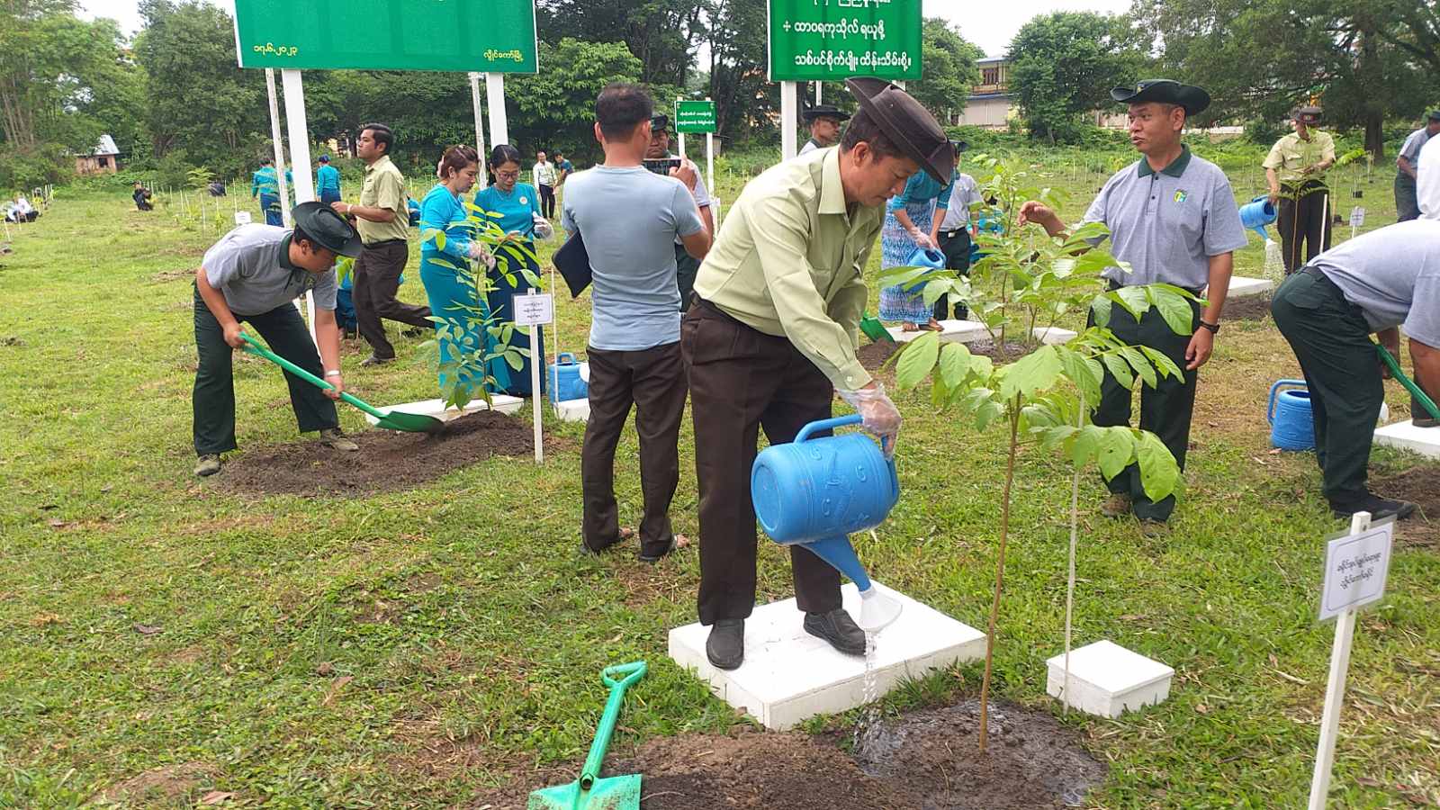 ယနေ့စုပေါင်းသစ်ပင်စိုက်ပျိုးပွဲဝင် ဒေသနှင့်ကိုက်ညီသည့် သစ်မျိုးများ၊ အဖိုးတန်သစ်မျိုးများ၊ ရာသီအလိုက် ဖူးပွင့်နိုင်သည့်အပင်များ၊ ကြီးမြန်သစ်မျိုးများ၊ အရိပ်ရသစ်မျိုးများဖြစ်သည့် ကံကော်၊ ခရေ၊ စိန်ပန်းနီ၊ စိန်ပန်းပြာ၊ မဟော်ဂနီ၊ ကျွန်း၊ ခါတော်မီ၊ ဆီသပြေ၊ ပျဥ်းကတိုး၊ ဝါးပိုးဝါး စသည့် သစ်မျိုး(၁၀)မျိုး ပျိုးပင်စုစုပေါင်း(၄၀၀)ပင်ကို စုပေါင်းစိုက်ပျိုးခဲ့ ကြောင်း သိရသည်။