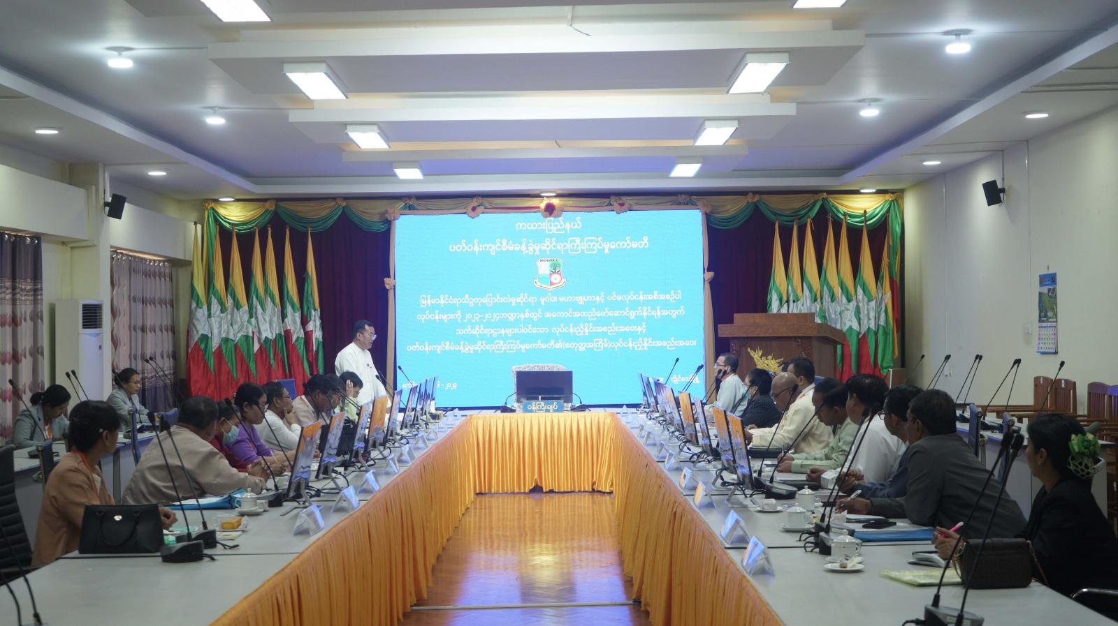 မြန်မာနိုင်ငံ ရာသီဥတုပြောင်းလဲမှုဆိုင်ရာ မူဝါဒ၊ မဟာဗျူဟာနှင့် ပင်မလုပ်ငန်း အစီအစဉ်ပါ လုပ်ငန်းများကို ၂၀၂၃-၂၀၂၄ ဘဏ္ဍာနှစ်တွင် အကောင်အထည်ဖော် ဆောင်ရွက်နိုင်ရန် သက်ဆိုင်ရာဌာနများပါဝင်သော လုပ်ငန်းညှိနှိုင်းအစည်းအဝေးနှင့် ပြည်နယ်ပတ်ဝန်းကျင်စီမံခန့်ခွဲမှုဆိုင်ရာ ကြီးကြပ်မှုကော်မတီ၏(စတုတ္ထအကြိမ်) လုပ်ငန်းညှိနှိုင်း အစည်းအဝေးကို ယနေ့ နံနက်ပိုင်းက ပြည်နယ်အစိုးရအဖွဲ့ရုံး ၊ အစည်းအဝေးခန်းမ၌ ကျင်းပပြုလုပ်ခဲ့သည်။