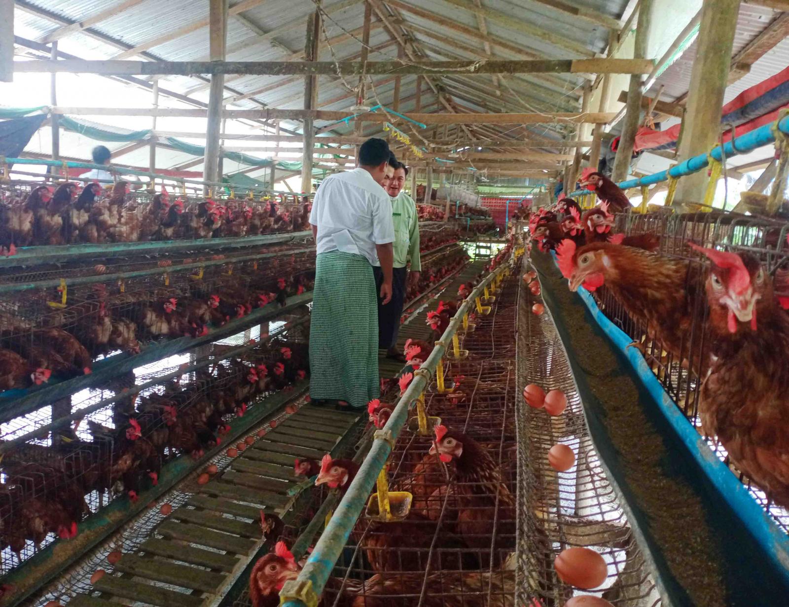 ထို့နောက် ခရိုင်စီမံအုပ်ချုပ်ရေးအဖွဲ့ဥက္ကဋ္ဌနှင့် တာဝန်ရှိသူများသည် အဆိုပါကျေးရွာ၌ မွေးမြူရေး လုပ်ငန်းဖွံ့ဖြိုးတိုးတက်ရေးအတွက် ဥစားကြက်မွေးမြူရေးလုပ်ငန်းများ ဆောင်ရွက်လျက်ရှိသည့် ကြက်ခြံများသို့ သွားရောက်ကြည့်ရှုစစ်ဆေးရာ မွေးမြူရေးနှင့်ကုသရေးဦးစီးဌာနနှင့် ဥစားကြက်မွေးမြူရေးလုပ်ငန်းရှင်များမှ ဥစားကြက်မွေးမြူထားရှိမှုများနှင့်ပတ်သက်၍ ရှင်းလင်းတင်ပြကြပြီး ခရိုင်စီမံအုပ်ချုပ်ရေးအဖွဲ့ဥက္ကဋ္ဌက လက်ရှိမွေးမြူထားရှိသော ဥစားကြက်ကောင်ရေထက် ပိုမိုတိုးချဲ့မွေးမြူကြရန် လမ်းညွှန်မှာကြားကာ ကြက်ခြံအား လှည့်လည်ကြည့်ရှုစစ်ဆေးခဲ့ကြောင်း သိရသည်။