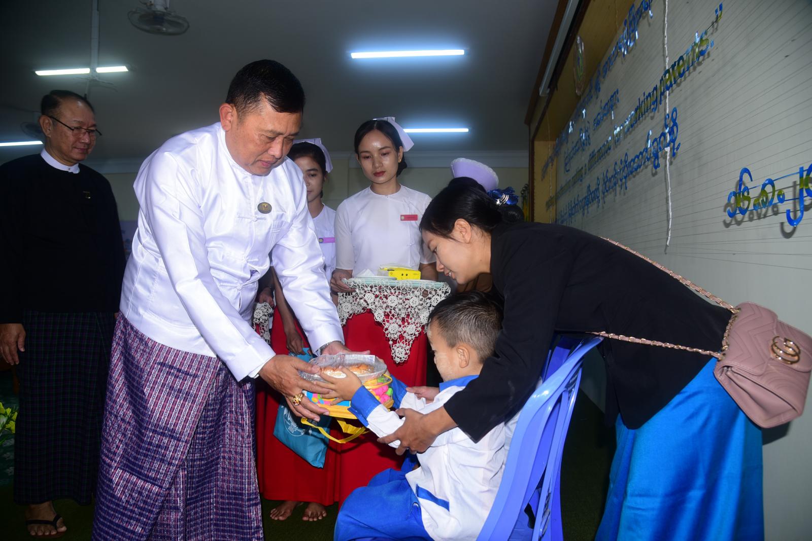 ထို့နောက် အသက်(၅)နှစ်အောက် ကလေးများအား အင်အားပြည့် ဗီတာမင်အေ ဆေးလုံးများကို ရှမ်းပြည်နယ်ဝန်ကြီးချုပ် ဦးအောင်ဇော်အေးနှင့်ဇနီး၊ ပြည်နယ်တရားလွှတ်တော် တရားသူကြီးချုပ် ဦးသန်းဦးလွင်နှင့်ဇနီး၊ တာဝန်ရှိသူများက တိုက်ကျွေးပေးကြ၍ ကလေးငယ်များအား (ကြက်ဥ၊ ပဲပေါင်မုန့်၊ ဌက်ပျောသီး၊ ပဲနို့၊ Food Basket) ပေးအပ်ခဲ့ပြီး ကိုယ်ဝန်ဆောင် မိခင်များအား အာဟာရဆေးပြားများ၊ (ကြက်ဥ၊ ကုလားပဲ၊ အိုင်အိုဒင်းဆားများကို) ရှမ်းပြည်နယ် အမျိုးသမီးရေးရာ နာယက၊ ရှမ်းပြည်နယ်ဝန်ကြီးချုပ်၏ဇနီးနှင့် အဖွဲ့များ၊ တာဝန်ရှိသူများက ပေးအပ်ခဲ့ကြပြီး မှတ်တမ်းတင်ဓါတ်ပုံ ရိုက်ကူး၍ ပြခန်းများအား လှည့်လည်ကြည့်ရှုကြကြောင်း သိရသည်။