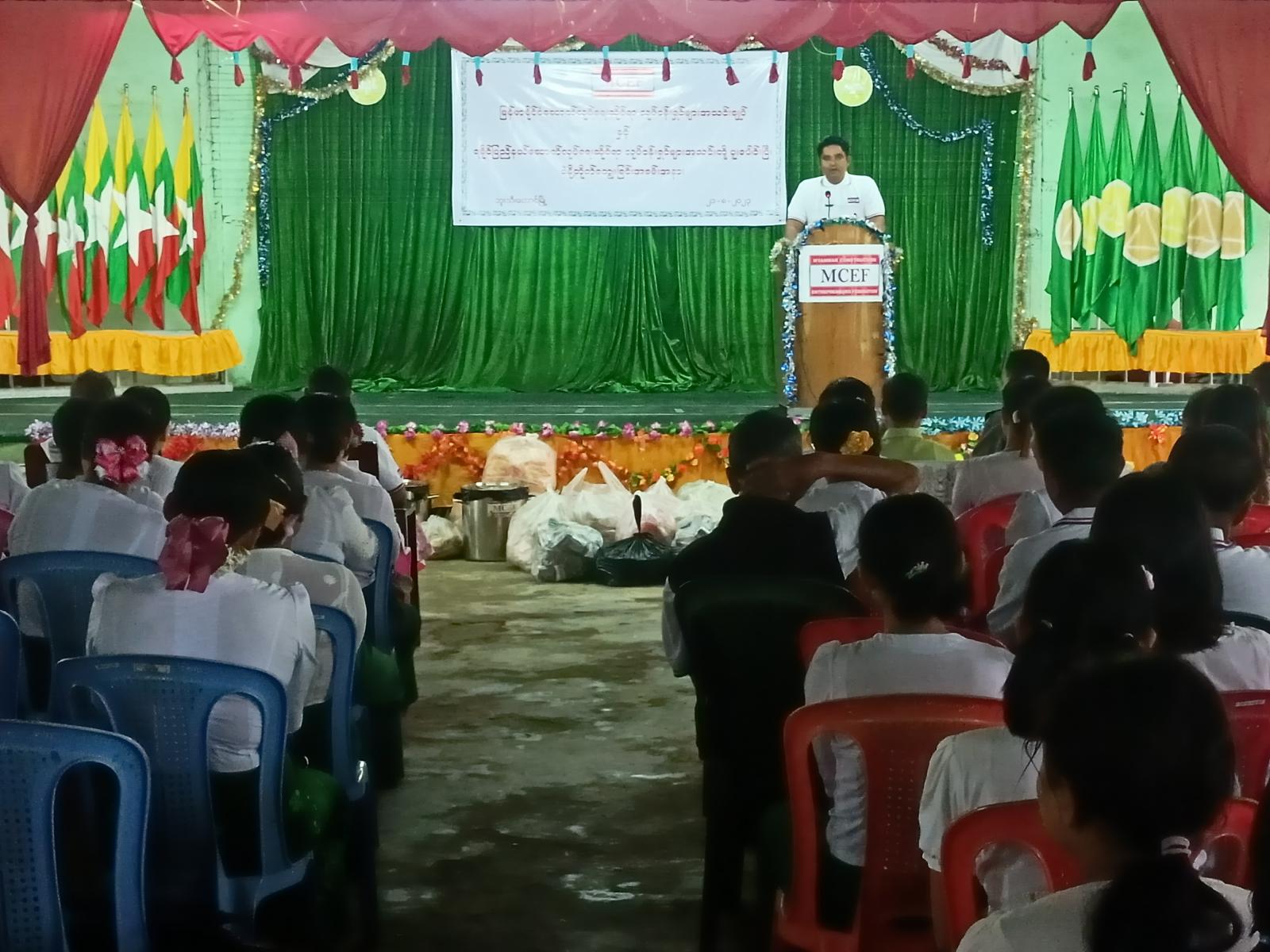 ရှေးဦးစွာ မြို့နယ်စီမံအုပ်ချုပ်ရေးအဖွဲ့ဥက္ကဋ္ဌ ဦးဇော်ဝင်းက အဖွင့်အမှာစကားပြောကြားခဲ့ပြီး ရခိုင်ပြည်နယ်ဆောက်လုပ်ရေးလုပ်ငန်းဆိုင်ရာ လုပ်ငန်းရှင်များအသင်း ပြန်ကြားရေးမှူးဦးနေမင်းထွန်းက ပဲနို့တိုက်ကျွေးရခြင်းနှင့် ပတ်သက်၍ရှင်းလင်းပြောကြားပြီးနောက် ကျောင်းသား/သူများအား ပဲနို့များ တိုက်ကျွေးကြသည်။