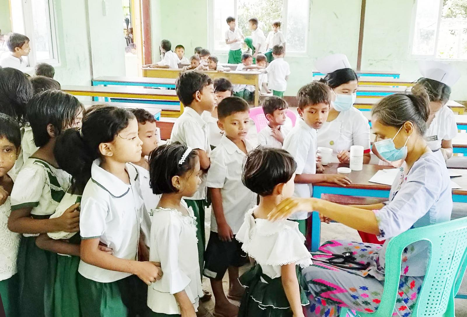 ရခိုင်ပြည်နယ်၊ မောင်တောမြို့၌ အမှတ်(၄) အခြေခံပညာအထက်တန်းကျောင်းတွင် မြို့သူကြီးကျေး လက် ကျန်းမာရေးဌာနမှ တာဝန်ရှိသူများက ယမန်နေ့ နံနက်ပိုင်းက ကျောင်းကျန်းမာရေးစစ်ဆေးခြင်း နှင့် အသိပညာပေး ဟောပြောခြင်းများကို ဆောင်ရွက်ခဲ့ကြသည်။