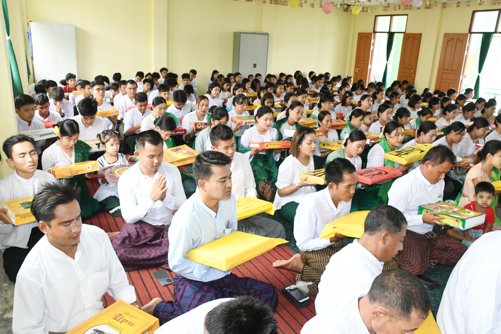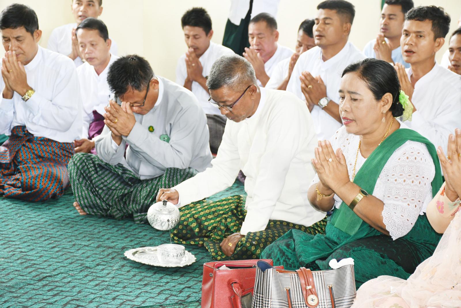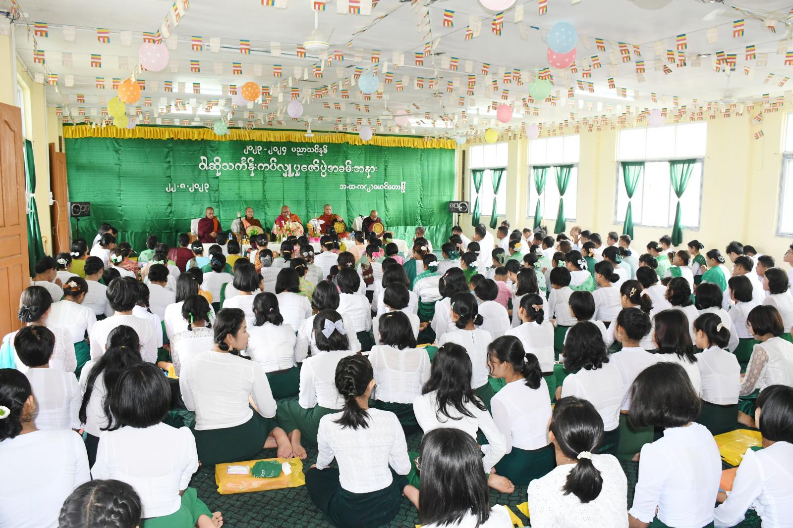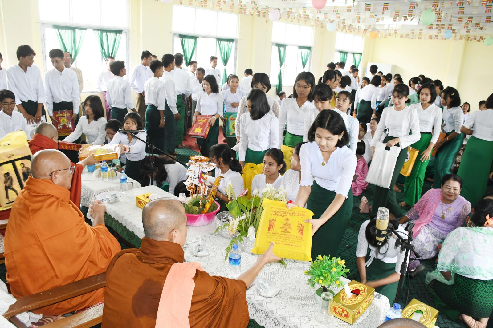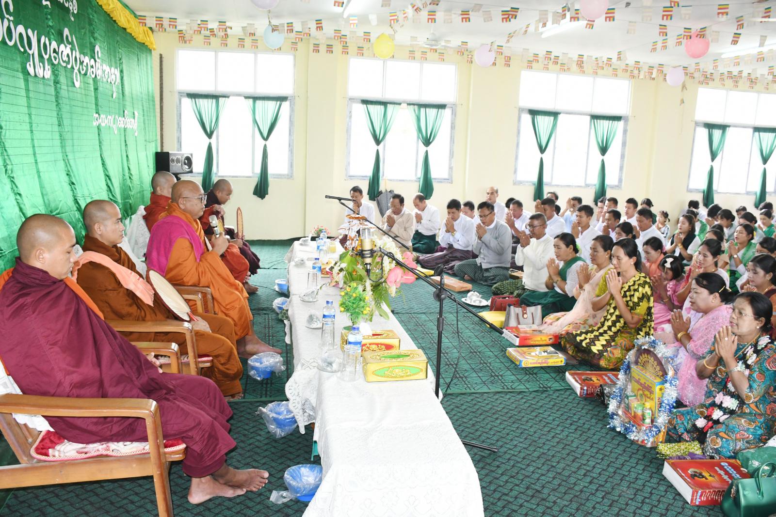 ရှေးဦးစွာ ဆရာတော်သံဃာတော်များ၊ ခရိုင်ပညာရေးမှူး ဦးချစ်သိန်း၊ အမှတ်(၂)အခြေခံပညာ အထက်တန်း ကျောင်းအုပ်ဆရာကြီး ဦးမောင်ခင်ဝင်းနှင့် ဆရာ၊ဆရာမများ၊ ဧည့်ပရိသတ်များ၊ ကျောင်းသား၊ ကျောင်းသူများက နမောတဿ သုံးကြိမ်ရွတ်ဆို ဘုရားကန်တော့ပြီး အလိုတော်ပြည့်ဆရာတော်ဘုရားထံမှ ငါးပါးသီလခံယူဆောက်တည် ကြသည်။ ဆက်လက်၍ ဆရာတော် သံဃာတော် အရှင်သူမြတ်များက မေတ္တသုတ် အစရှိသော ပရိတ်တရားတော်များ ရွတ်ပွားချီးမြှင့်တော်မူကြပြီး ခရိုင်ပညာရေးမှူး ဦးချစ်သိန်း၊ အမှတ်(၂)အခြေခံပညာ အထက်တန်းကျောင်းအုပ်ဆရာကြီး ဦးမောင်ခင်ဝင်းနှင့် ဆရာ၊ဆရာမများ ဧည့်ပရိသတ်များ၊ ကျောင်းသား၊ ကျောင်းသူများက ဆရာတော် သံဃာတော် အရှင်သူမြတ်များအား ဝါဆိုသင်္ကန်း၊ နဝကမ္မနှင့် လှူဖွယ်ပစ္စည်းများ ဆက်ကပ်လှူဒါန်းခဲ့ကြသည်။ ထို့နောက် အလိုတော်ပြည့်ဆရာတော်ဘုရားထံမှ အနုမောဒနာ တရားနာယူကာ လှူဒါန်းမှုအစုစုအတွက် ရေစက်သွန်းချအမျှပေးဝေခဲ့ကြသည်။ ယင်းနောက် အခမ်းအနားကို ဗုဒ္ဓသာသနံစိရံတိဋ္ဌတု သုံးကြိမ်ရွတ်ဆို ဆုတောင်း၍ အခမ်းအနားကို ရုပ်သိမ်းကြပြီး ရွှေမိုးငွေမိုးရွာသွန်းဖြိုးကာ ဆရာတော်၊ သံဃာတော်အရှင်သူမြတ်များအား နေ့ဆွမ်းဆက်ကပ် လှူဒါန်းခဲ့ကြကြောင်းသိရသည်။