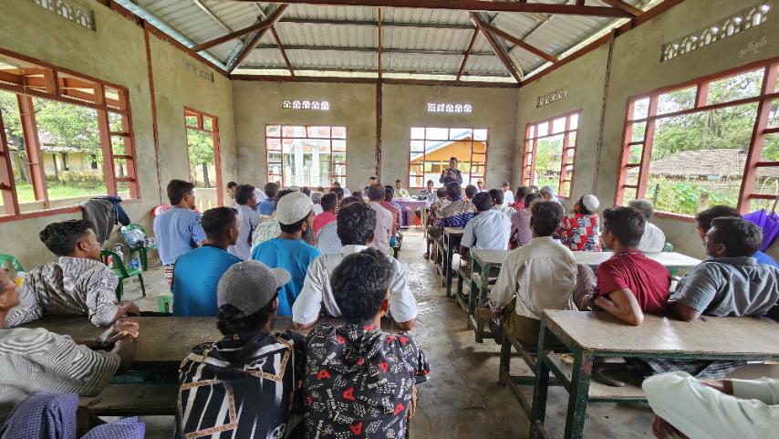 ရခိုင်ပြည်နယ်၊ ဘူးသီးတောင်မြို့နယ်၌ စစ်ကြောင်းကြီး (၅)ကြောင်းဖြင့် သက်ဆိုင်ရာတာဝန်ရှိသူများက ဒေသဖွံ့ဖြိုးရေးလုပ်ငန်းများဆောင်ရွက်ရန် ယမနေ့ညနေပိုင်းက မောင်ကြီးတောင်ကျေးရွာအုပ်ရှိ အ.မ.က စာသင်ကျောင်း၌ လူထုတွေ့ဆုံပွဲပြုလုပ်သည်။