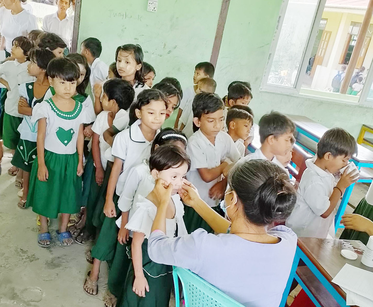 ရခိုင်ပြည်နယ်၊ မောင်တောမြို့ အမှတ်(၄)အခြေခံပညာအထက်တန်းကျောင်းတွင် မြို့သူကြီးကျေးလက်ကျန်းမာရေးဌာနမှ တာဝန်ရှိသူများသည် ဩဂုတ်လ ၂၁ ရက်နေ့၊ နံနက်ပိုင်းက ကျောင်းကျန်းမာရေးစစ်ဆေးခြင်းနှင့် အသိပညာပေးဟောပြောခြင်းများ ဆောင်ရွက်ခဲ့ကြသည်။