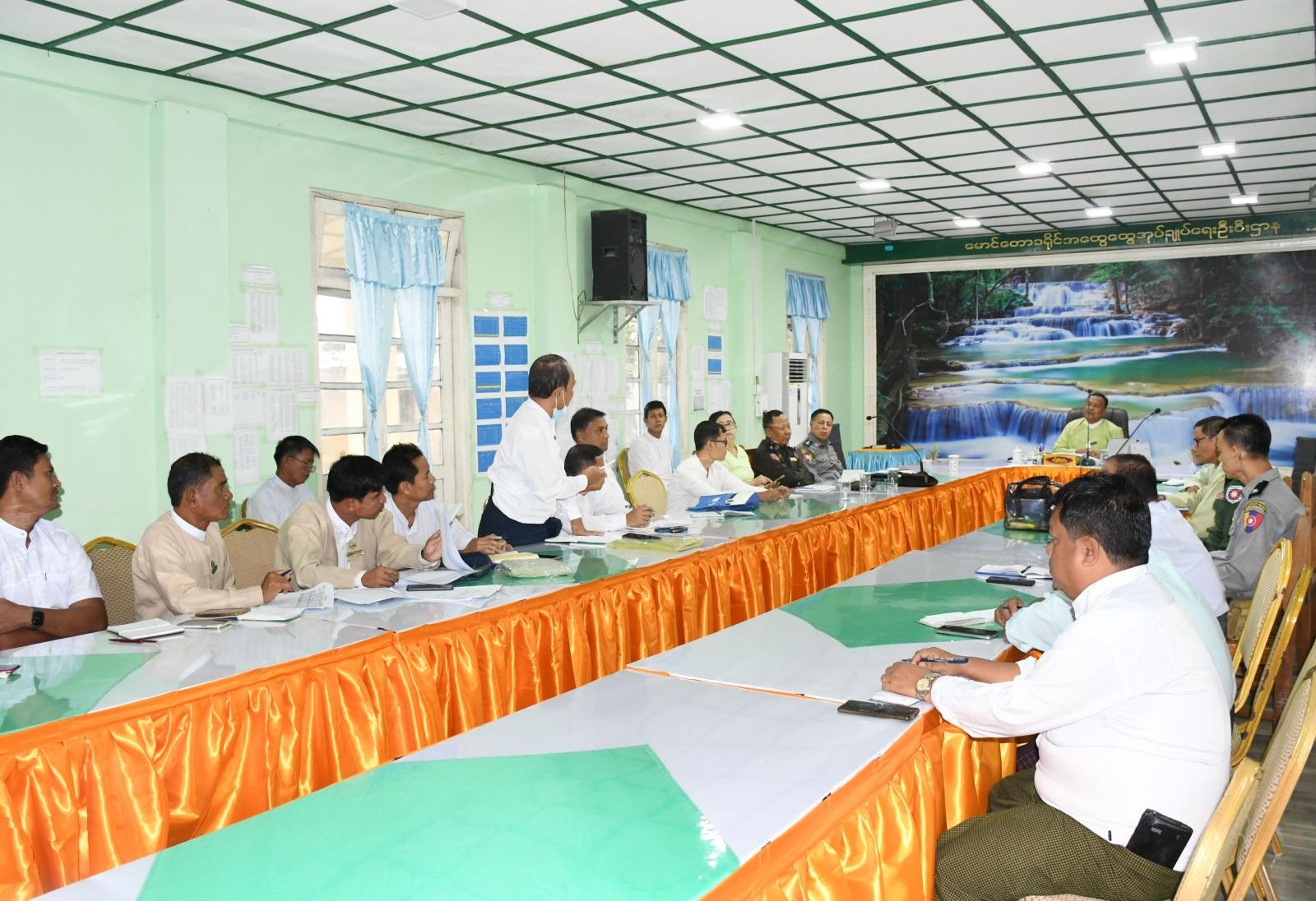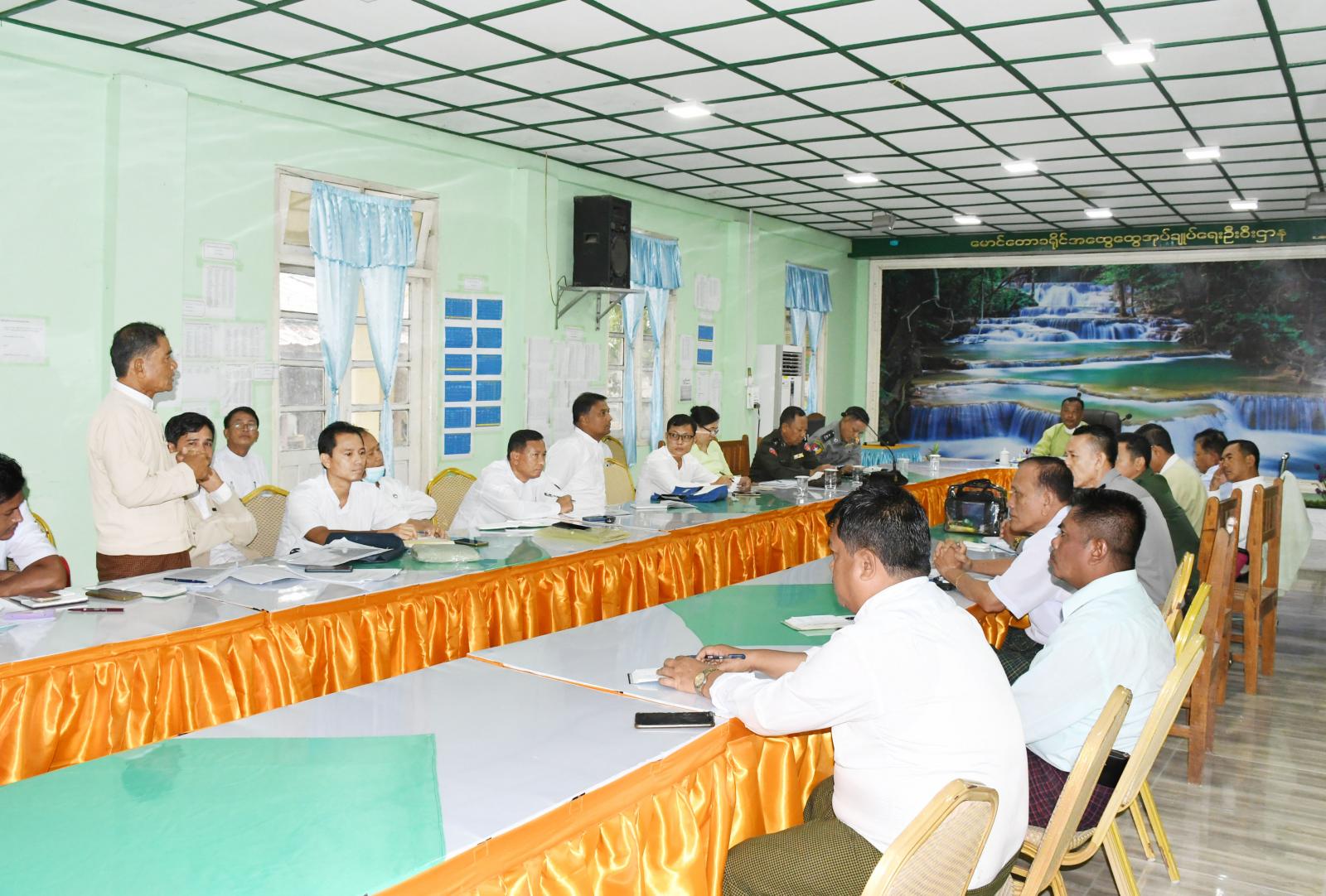 ရှေးဦးစွာ ခရိုင်စီမံအုပ်ချုပ်ရေးအဖွဲ့ဥက္ကဋ္ဌ ဦးနေဦးကအမှာစကားပြောကြားပြီး ခရိုင်အဆင့် စိုက်ပျိုးထုတ်လုပ်မှု တိုးတက်မြင့်မားရေးကြီးကြပ်မှုကော်မတီ တာဝန်ရှိသူများက မုန်တိုင်းဒဏ်ကြောင့် ပျက်စီးသွားသည့်ကျေးရွာများရှိ လယ်ယာမြေများတွင် နိုင်ငံတော်မှထောက်ပံ့ပေးအပ်ထားသော မိုးစပါးများ စိုက်ပျိုးထားရှိမှု၊ ကျေးရွာများအလိုက် လယ်ယာမြေများ ထွန်ယက်ပြီးစီးမှု၊ လယ်ယာမြေများတွင် ဓာတ်မြေဩဇာများ ကြဲပက်ဆောင်ရွက်ထားရှိမှု အခြေအနေများ၊ သတ်မှတ်ထားသော လျာထားစိုက်ဧက ပြည့်မီနိုင်ရေး ဆောင်ရွက်နေမှုအခြေအနေများနှင့် မောင်တောခရိုင်အတွင်း ဒေသတွင်း ငါးဖူလုံစွာစားသုံးနိုင်ရေး၊ ငါးသယံဇာတ တိုးပွားနိုင်ရေးအတွက် ငါးလွှတ်ပွဲများ ဆောင်ရွက်မည့် အခြေအနေများအား တင်ပြဆွေးနွေးခဲ့ကြရာ ခရိုင်စီမံအုပ်ချုပ်ရေးအဖွဲ့ဥက္ကဋ္ဌက လိုအပ်သည်များအား ပေါင်းစပ်ညှိနှိုင်း ဆောင်ရွက်ပေးခဲ့သည်။
