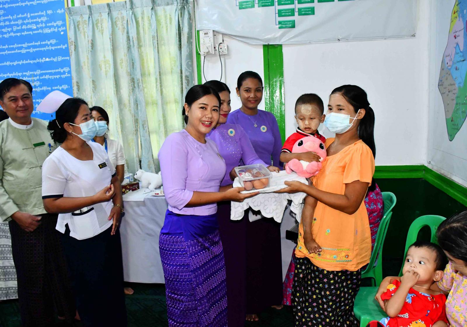 ထို့နောက် ပြည်သူ့ကျန်းမာရေးဌာနမှ ခရိုင်ဆရာဝန်ကြီး ဒေါက်တာရဲလွင်မောင်က အဟာရဖွံ့ဖြိုးရေးရက်သတ္တပတ်များလှုပ်ရှားမှုအခမ်းအနား ပြုလုပ်ရခြင်းနှင့်ပတ်သက်၍ ကျန်းမာရေး အသိပညာပေးပြောကြားပြီး မြန်မာနိုင်ငံကျန်းမာရေးအသင်းမှ ဒေါက်တာမေသဇင်ဦးက စီမံချက်လုပ်ငန်းများအကြောင်းအားရှင်းလင်းပြောကြားသည်။ဆက်လက်၍ ခရိုင်စီမံအုပ်ချုပ်ရေးအဖွဲ့ဥက္ကဋ္ဌ၊ ခရိုင်ဆရာဝန်ကြီးနှင့်တာဝန်ရှိသူများက ကလေးငယ်များအား ဗီတာမင်အေဆေးလုံးများတိုက်ကျွေး၍ အမှတ်တရလက်ဆောင်များပေးအပ်ခဲ့ကြပြီး အခမ်းအနားတက်ရောက်လာကြသူများ၊ နို့တိုက်မိခင်များနှင့်ကိုယ်ဝန်ဆောင်မိခင်များကို ကျန်းမာရေးဌာနမှ တာဝန်ရှိသူများက အစညအုပ်စုသုံးအုပ်စုအကြောင်း ကျန်းမာရေးအသိပညာပေးဟောပြောခဲ့ကြကြောင်း သိရသည်။