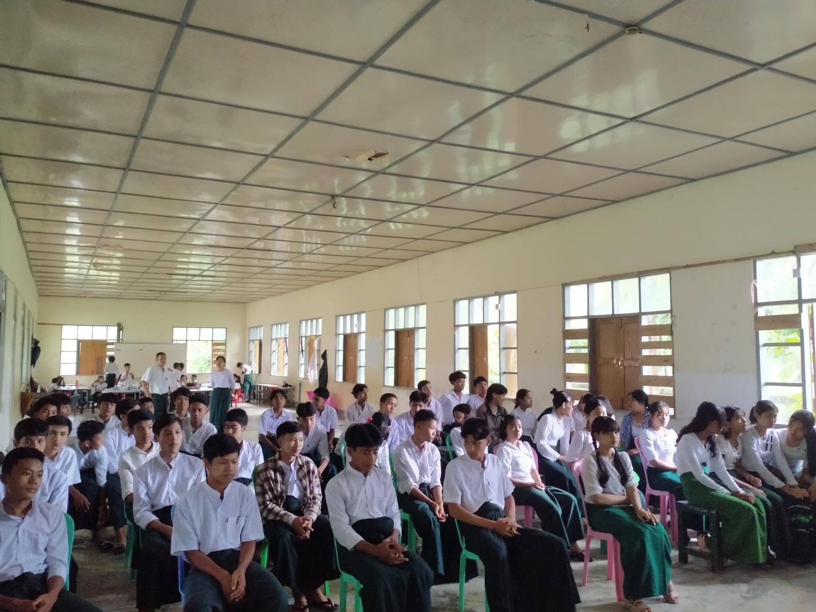 ဆက်လက်၍ လူငယ်စကားဝိုင်းကို ကျင်းပရာ ပြန်ကြားရေးနှင့်ပြည်သူ့ဆက်ဆံရေးဦးစီးဌာနမှ မြို့ဦးစီးမှူး ဒေါ်သန်းသန်းလေးက ဦးဆောင်သူအဖြစ်ပါဝင်ဆောင်ရွက်ပြီး Grade-10 မှ မောင်အောင်ဖြိုးသူက “မူးယစ်ဆေးဝါးဆိုသည်မှာ” ခေါင်းစဉ်ဖြင့်လည်းကောင်း၊ Grade-10 မှ မပန်းဆုရတီလင်းက “မူးယစ်ဆေးသုံးစွဲရခြင်း၏ အကြောင်းအရင်းများ” ခေါင်းစဉ်ဖြင့်လည်းကောင်း၊ Grade-10 မှ မဖြိုးအိမွန်က “မူးယစ်ဆေးသုံးစွဲခြင်း၏ ဆိုးကျိုးများ” ခေါင်းစဉ်ဖြင့်လည်ကောင်း၊ Grade-10 မှ မခင်အေးချိုက “မူးယစ်ဆေးသုံးစွဲသူတို့၏ သွင်ပြင်လက္ခဏာများ” ခေါင်းစဉ်ဖြင့်လည်းကောင်း၊ အသီးသီးဆွေးနွေးခဲ့ကြသည်။ ထို့နောက် တက်ရောက်လာကြသည့် ကျောင်းသား/သူများက မိမိတို့သိရှိလိုသည်များကိုမေးမြန်းရာ ဦးဆောင်ဆွေးနွေးသူများက ပြန်လည်ရှင်းလင်း ဆွေးနွေးခဲ့ကြသည်။ အဆိုပါအခမ်းအနားသို့ တက်ရောက်လာကြသည့် ကျောင်းသား/သူများက ပြန်ကြားရေးနှင့်ပြည်သူဆက်ဆံရေးဦးစီးဌာနက ခင်းကျင်းပြသထားသည့် အသိပညာပေး နံရံကပ်စာစောင်နှင့် စာအုပ်စာစောင်ပြပွဲကို စိတ်ဝင်တစား လေ့လာဖတ်ရှုခဲ့ကြောင်း သိရသည်။