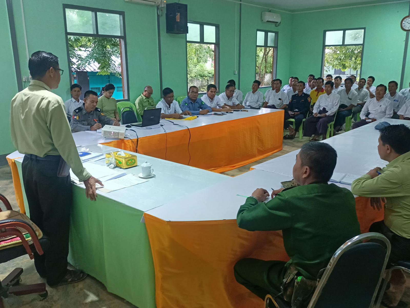 ရှေးဦးစွာ မြို့နယ်စီမံအုပ်ချုပ်ရေးအဖွဲ့ဥက္ကဋ္ဌ ဦးဇော်ဝင်းက (၂၄) ကြိမ်မြောက် မြန်မာ့ရိုးရာယဉ်ကျေးမှုအဆို၊ အက၊ အရေး၊ အတီး ပြိုင်ပွဲကျင်းပနိုင်ရေးအတွက် ပြိုင်ပွဲကျင်းပရေးဦးစီးကော်မတီနှင့် လုပ်ငန်းကော်မတီများအား ဖွဲ့စည်းတာဝန်ပေးအပ်ထားပြီး ကော်မတီများအနေဖြင့် မိမိတို့လုပ်ငန်း ကော်မတီများအလိုက် ဆောင်ရွက်ထားရှိမှု အခြေအနေများကို အကြံပြုဆွေးနွေးတင်ပြကြရန်နှင့် ပြိုင်ပွဲအောင်မြင်စွာကျင်းပနိုင်ရေးအတွက် ကော်မတီအဖွဲ့များနှင့် ဌာနဆိုင်ရာများက ပူးပေါင်းပါဝင်ဆောင်ရွက်ပေးကြ စေလိုကြောင်း ဆွေးနွေးပြောကြားခဲ့သည်။