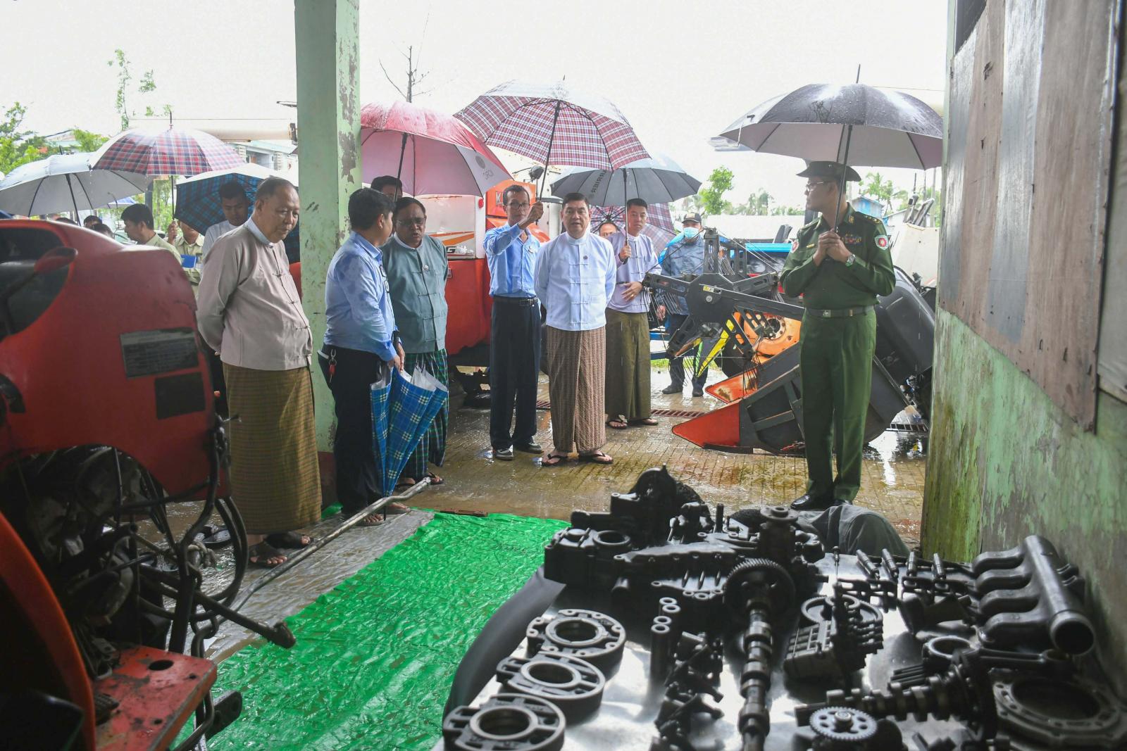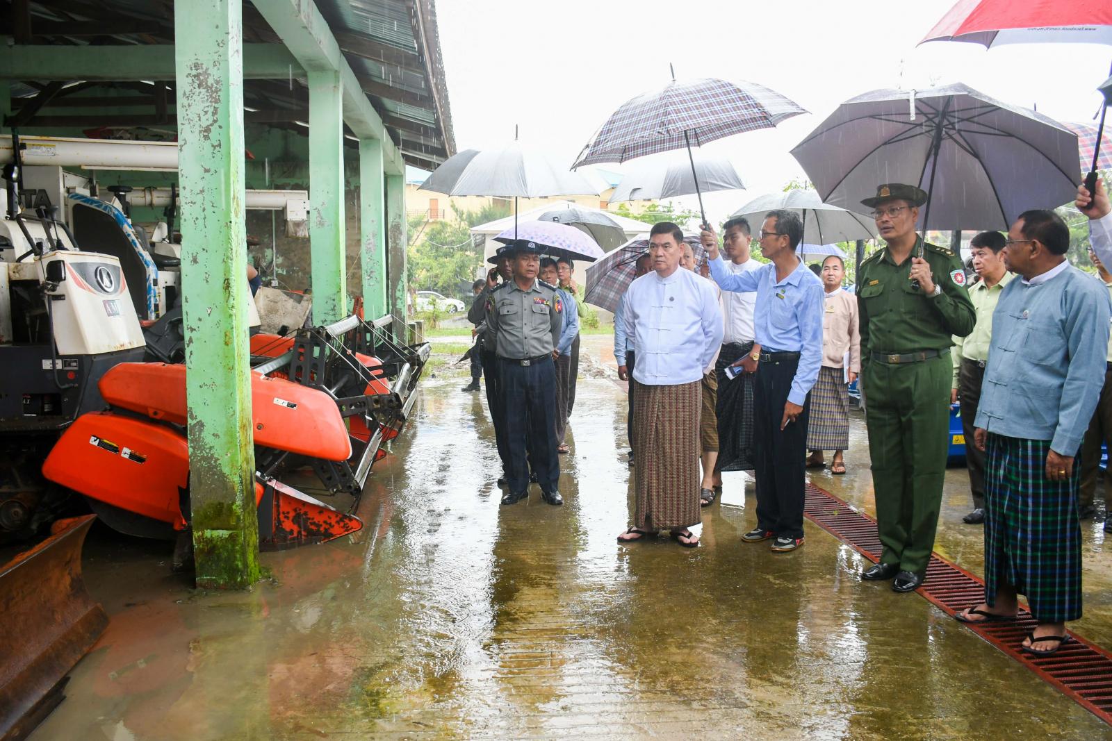 ယင်းနောက် ပြည်နယ်ဝန်ကြီးချုပ်နှင့်အဖွဲ့သည် အမှတ်(၇၂)စက်မှုလယ်ယာစခန်း(စစ်တွေ)၊ မြို့နယ်ဦးစီးမှူးရုံး သို့ရောက်ရှိရာ ပြည်နယ်ဦးစီးမှူး ဦးကျော်စိုးမိုးက မိုခါမုန်တိုင်းဒဏ်သင့်ဒေသများ တွင် လယ်ယာမြေများ ထွန်ယက်စိုက်ပျိုးနိုင်ရန်အတွက်နိုင်ငံတော်မှပံ့ပိုးသည့် Mini Tractorနှင့် လက်တွန်းထွန်စက်များအား မုန်တိုင်းသင့်ဒေသများသို့ ဖြန့်ဝေကာအခမဲ့ထွန်ယက်ပေးခဲ့မှုနှင့် ဌာနပိုင် ထွန်စက်များနှင့် မြို့နယ်အလိုက်ပြုပြင်ထိမ်းသိမ်းဆောင်ရွက်ပြီးစီးမှု အခြေအနေ၊ စပါးရိတ်သိမ်းခြွေ လှေ့စက်မောင်းနှင်၊ ပြုပြင်ထိန်းသိမ်းမှု(အခြေခံ)ဝန်ထမ်း သင်တန်းဖွင့်လှစ်မည့်အစီအမံများကို ရှင်း လင်းတင်ပြသည်။ တင်ပြချက်များအပေါ် ပြည်နယ်ဝန်ကြီးချုပ်က လိုအပ်သည်များကိုမှာကြားပြီး စက်ကရိယာများအား ဆေးကြောဆီဖြန်းခြင်း၊ ပြုပြင်ထိန်းသိမ်းခြင်းများ ဆောင်ရွက်နေမှုကို လှည့်လည်ကြည့်ရှုစစ်ဆေးခဲ့သည်။