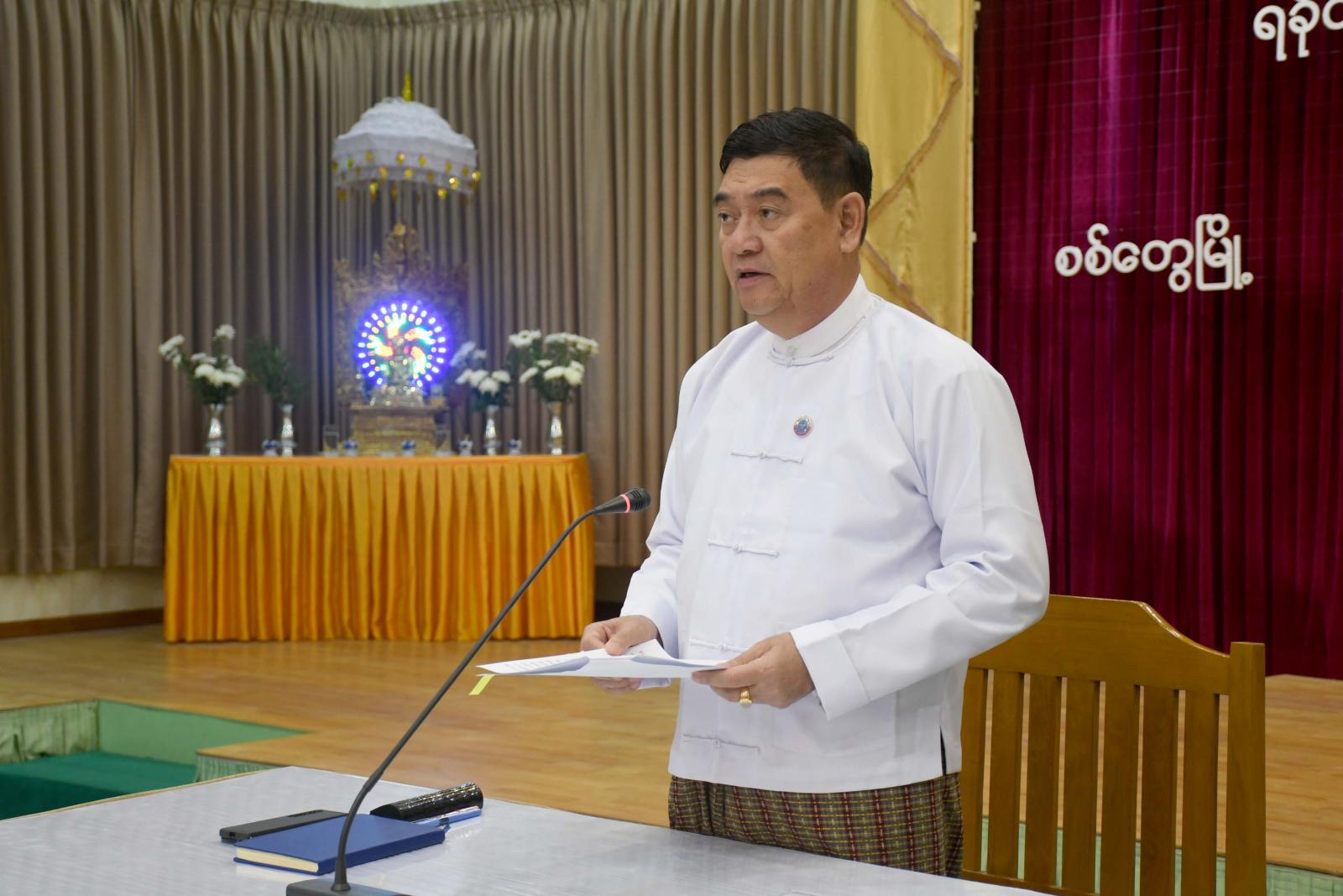 အစည်းအဝေးတွင် စုပေါင်းဆွမ်းဆန်စိမ်းလောင်းလှူပွဲ ကျင်းပရေးဦးစီးကော်မတီ နာယက၊ ပြည်နယ်ဝန်ကြီးချုပ် ဦးထိန်လင်းက ဆွမ်းဆန်စိမ်းလောင်းလှူပွဲသည် နှစ်စဉ်နှစ်တိုင်း ပြည်နယ်အစိုးရ အဖွဲ့ကကြီးမှူးကျင်းပသည့် ပွဲတစ်ပွဲဖြစ်ပြီး ယခုနှစ်တွင်လည်း လောကာနန္ဒာစေတီတော်မြတ်ကြီး အတွင်းမှာ သံဃာတော်အပါး ၅၀၀ ကို သီတင်းကျွတ်လပြည့် ဥပုသ်နေ့မတိုင်မီအဖိတ်နေ့ ၃ ရက်တွင် ၃ ကြိမ်လောင်းလှူမည်ဖြစ်ကြောင်း၊ ပြည်နယ်အစိုးရအဖွဲ့အနေဖြင့် ယခင်နှစ်က ဆွမ်းဆန်တော် အပါအဝင် ပစ္စည်းတန်ဖိုးကျပ် ၁၆၀၂၈၇၀ ဖိုးကိုလောင်းလှူခဲ့ပါကြောင်း၊ ယခုနှစ်တွင် မိုခါဆိုင်ကလုန်း မုန်တိုင်းကြောင့် ပြည်နယ်အတွင်းပျက်စီးဆုံးရှုံးမှုများပြားခဲ့သော်လည်း ပြန်လည်ထူထောင်ရေး လုပ်ငန်းများ ပြန်လည်တိုးတက်ကောင်းမွန်လာပြီဖြစ်သည့်အတွက် နှစ်စဉ်နှစ်တိုင်းလောင်းလှူနေသော ဝါတွင်း ကာလဆွမ်းဆန်စိမ်းလောင်လှူပွဲကို ယခင်နှစ်များကဲ့သို့ စည်းကားသိုက်မြိုက်စွာ လောင်းလှူ နိုင်ရေး ဖွဲ့စည်းတာဝန်ပေးအပ်ထားသည့် ကော်မတီများက ပူးပေါင်းဆောင်ရွက်ကြရမည် ဖြစ်ကြောင်း နှင့် ပြည်နယ်အဆင့်ဌာနဆိုင်ရာများ၊ ခရိုင်၊ မြို့နယ်စီမံအုပ်ချုပ်ရေးအဖွဲ့များကလည်း စေတနာရှင်၊ ကုသိုလ်ရှင်များ ပါဝင်လှူဒါန်းနိုင်ရေးကို တိုက်တွန်းစည်းရုံးဆောင်ရွက်သွားကြစေလိုကြောင်း ပြောကြားသည်။