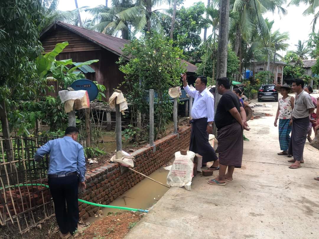 ထိုသို့ ဆောင်ရွက်ခဲ့ရာတွင် အမှတ်(၄)ရပ်ကွက်၊ အောင်သစ္စာလမ်းရှိ ဦးလှမောင်၏ အိမ်ခြံရှေ့၌ ရေစီးရေလာသွားရာ ရေမြောင်းအား ပိတ်ဆို့နေမှုအပေါ် တွေ့ရှိရ၍ အမှုဆောင်အရာရှိ ဦးညီညီလွင်က မိမိတို့ရပ်ကွက် ရေစီးရေလာကောင်းမွန်စေရေး၊ ရေညစ်ညမ်းမှုများကြောင့် ခြင်ပေါက်ပွားမှုများ မဖြစ်ပေါ်စေရေး၊ ပတ်ဝန်းကျင် သန့်ရှင်းမှုရှိစေရေးတို့အတွက် ဆောင်ရွက်နေခြင်းဖြစ်ကြောင်း၊ ရေသွားလာမှုအား ပိတ်ဆို့စေသည့် အမှိုက်သရိုက်များကို ဖယ်ရှား၍ ရေစီးရေလာ ကောင်းမွန်သည့် ရေမြောင်း ဖြစ်ပေါ်လာစေရေးအတွက် မိမိတို့ အသိစိတ်ဖြင့် ဆောင်ရွက်ကြရန် လိုအပ်ပါကြောင်း ညှိနှိုင်းဆွေးနွေး ပြောကြားခဲ့သည်။