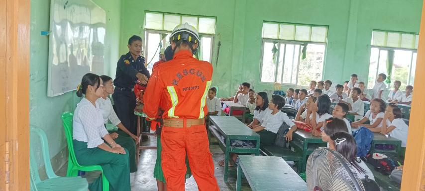 အဆိုပါ သဘာဝဘေးအန္တရာယ် ကြိုတင်ကာကွယ်ရေး အသိပညာပေး ဟောပြောရာတွင် ကျောက်တော်မြို့နယ် မီးသတ်ဦးစီးဌာနမှ မြို့နယ်မီးသတ်ဦးစီးမှူး ဦးဌေးမင်းနိုင် ဦးဆောင်၍ ဆရာ/ဆရာမများနှင့် ကျောင်းသား/ ကျောင်းသူများကို ရေဘေးအန္တရာယ် ကြိုတင်ကာကွယ်နိုင်ရန်အတွက် အသက်ကယ်အင်္ကျီ (Life Jacket) များ စနစ်တကျ ဝတ်ဆင် အသုံးပြုတတ် စေရန်အတွက် မီးသတ်တပ်ဖွဲ့ဝင်များမှ လက်တွေ့သရုပ်ပြသခြင်း၊ ကျောင်းသား/ ကျောင်းသူများအား (Life Jacket) များ လက်တွေ့ဝတ်ဆင်ခြင်းများ လက်တွေ့ပြသခြင်းများ ဆောင်ရွက်ခဲ့သည်။ ဆက်လက်၍ ဒုမီးသတ်ဦးစီးမှူးက ယခုအခါ မိုးရာသီသို့ ရောက်ရှိလာပြီ ဖြစ်၍ ရုတ်တရက် လေပြင်းတိုက်ခတ်ခြင်း၊ ရေဘေးအန္တရာယ် ကြိုတင်ကာကွယ်ရေးနှင့် Life Jacket စနစ်တကျ ဝတ်ဆင်ရေး အသိပညာပေးခြင်းများ ကွင်းဆင်းဆောင်ရွက်ခဲ့ကြောင်း သိရသည်။