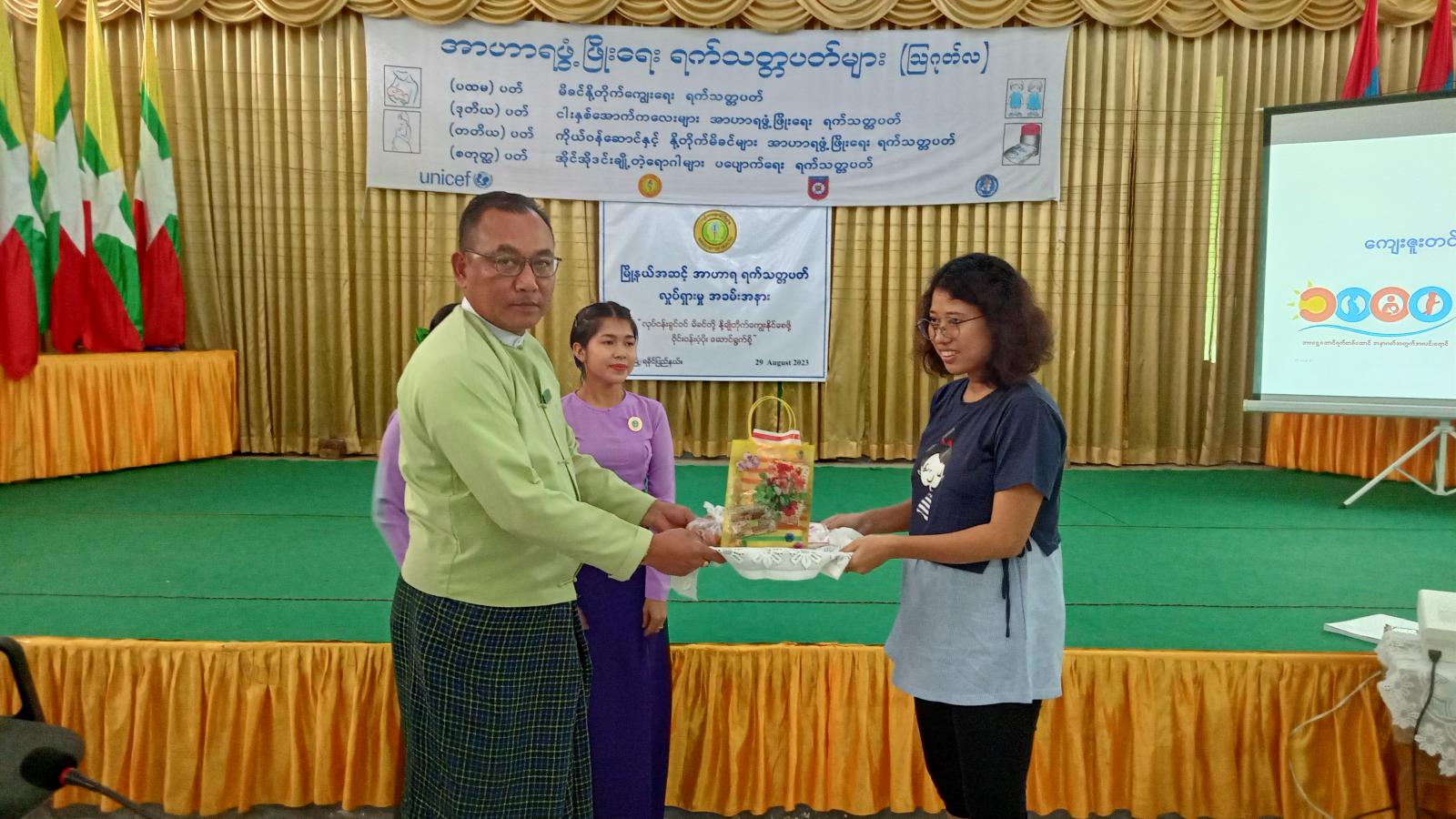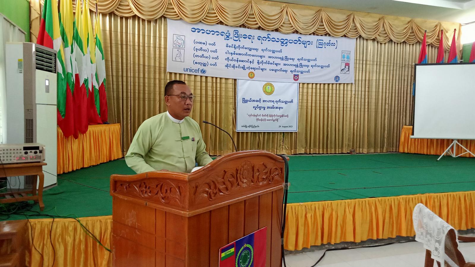 ရှေးဦးစွာ ခရိုင်စီမံအုပ်ချုပ်ရေးအဖွဲ့ဥက္ကဋ္ဌ ဦးအောင်ဇော်ထက်က လူသားများအားလုံး အသက်ရှင်သန်ရေး အာဟာရဖွံ့ဖြိုးတိုး တက်ရေးနှင့်ပတ်သက်၍ အကောင်အထည်ဖော်ဆောင်ရွက်ရန် အဖွင့်အမှာစကားပြောကြားခဲ့သည်။ ဆက်လက်၍ ခရိုင်ပြည်သူ့ကျန်းမာရေး ဦးစီး ဌာနမှ ခရိုင်ဦးစီးဌာနမှူး ဒုတိယညွှန်ကြားရေးမှူး ဒေါက်တာအောင်ကျော်မိုးက အာဟာရဖွံ့ဖြိုးတိုးတက်ရေးလုပ်ငန်းများ အကောင် အထည်ဖော်ဆောင်ရွက်ရာတွင် ပူးပေါင်းလက်တွဲ ဆောင်ရွက်သွားစေရေး၊ လူသားများကိုယ်ခန္ဓာဖွံ့ဖြိုးရေးနှင့် ဦးနှောက်အသိဉာဏ် ဖွံ့ဖြိုးရေးအတွက် နေ့စဉ်စာသုံးသည့် အစားအစာများသည် သန့်ရှင်းပြီး အာဟာရဓာတ်များ ပြည့်ဝရန်လိုကြောင်း၊ အခြေခံကျသည့် ကျောင်း သားလူငယ်များ ကျန်းမာသန်စွမ်းရေး အာဟာရ ဖွံ့ဖြိုးစေရန်နှင့် သံဓာတ်ချို့တဲ့သွေး အားနည်းရောဂါကာကွယ်ရေးလုပ်ငန်း၊ အဟာရ ပညာပေးခြင်း၊ အိုင်အိုဒင်းချို့တဲ့ရောဂါကာကွယ်ရေးလုပ်ငန်း၊ ဗီတာမင်အေချို့တဲ့ရောဂါ ပပျောက်ရေးလုပ်ငန်း၊ ဗီတာမင်ဘီဝမ်းချို့တဲ့ရောဂါကာကွယ်ရေး၊ ကိုယ်အလေးချိန်ပေးသည့် အခြေအနေ၊ ကျောင်းတွင်းအဟာရစောင့်ရှောက်မှုလုပ်ငန်း၊ သန်ချဆေးတိုက်ကျွေးခြင်း လုပ်ငန်း၊ နို့တိုက်မိခင် Vit A တိုက်ကျွေးမှုအခြေအနေ၊(၅)နှစ်အောက်ကလေးများ အဟာရဖွံ့ဖြိုးရေး၊ ကိုယ်ဝင်ဆောင်နှင့်နို့တိုက် မိခင်အဟာရဖွံ့ဖြိုးရေး၊အိုင်အိုဒင်းဆားစားသုံးမှုများနှင့် ပတ်သက်၍ ကျန်းမာရေးလှုပ်ရှားမှုအကြောင်းအရာများ၊ အာဟာရစောင့်ရှောက်ရေးနှင့် အာဟာရ ရက်သတ္တပတ်ကျင်းပပြုလုပ်ရခြင်းများကို ရှင်းလင်းပြောကြားခဲ့သည်။ ယင်းနောက် မြို့နယ်ပြည်သူ့ကျန်းမာရေးဦးစီးဌာနမှ သူနာပြုဦးစီးအရာရှိ ဒေါ်မြင့်မြင့်အေးက မိခင်နို့ချို တိုက်ကျွေးရေးနှင့် ပတ်သတ်၍ အကျိုးကျေးဇူးများရရှိခြင်းကြောင်းများအား ရှင်းလင်းပြော ကြားခဲ့သည်။