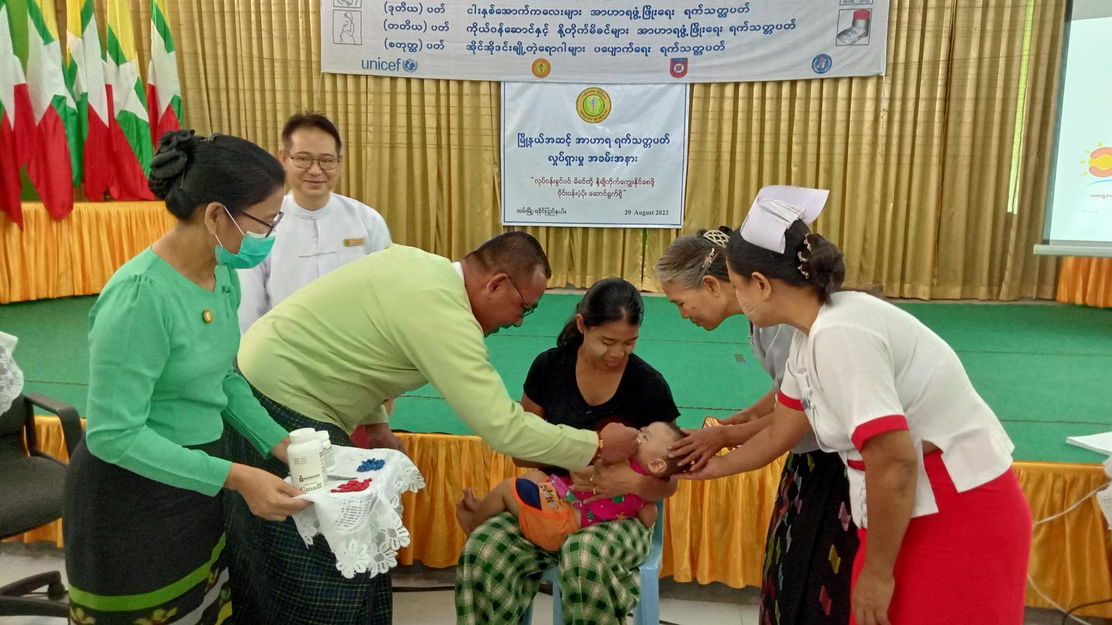ထို့နောက် ခရိုင်စီမံအုပ်ချုပ်ရေးအဖွဲ့ဥက္ကဋ္ဌ ဦးအောင်ဇော်ထက်နှင့် အဖွဲ့ဝင်များ၊ မြို့နယ်စီမံ အုပ်ချုပ်ရေးအဖွဲ့အဖွဲ့ဝင်များ၊ ခရိုင်ဦးစီး ဌာနမှူး ဒုတိယညွှန်ကြားရေးမှူး ဒေါက်တာ အောင်ကျော်မိုး၊ ခရိုင်အမျိုးသမီးရေးရာအဖွဲ့ဥက္ကဋ္ဌနှင့် အဖွဲ့ဝင်များ၊ မိခင်နှင့်ကလေး စောင့်ရှောက်ရေးအသင်းဝင်များနှင့် တာဝန်ရှိသူများက အသက် ၆ လမှ တစ်နှစ်ကြားရှိ ကလေးများအား ဗီတာမင်အေတိုက်ကျွေးခဲ့ကြပြီး ကိုယ်ဝန် ဆောင်မိခင်များနှင့် ကလေးများကို အားဆေးနှင့် အာဟာရဖြည့်စွက်စာများထောက်ပံ့ပေးအပ်ခဲ့ကြသည်။