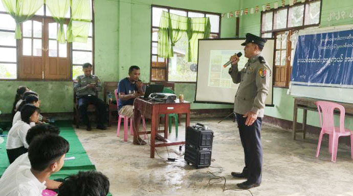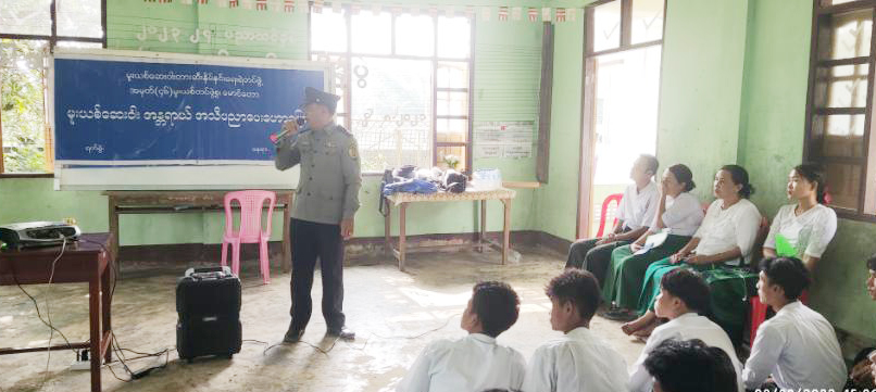 ရခိုင်ပြည်နယ်၊ မောင်တောခရိုင်၊ မောင်တောမြို့၌ လေးမိုင်အခြေခံပညာအထက်တန်းကျောင်းတွင် မူးယစ်ဆေးဝါးနှင့် လူကုန်ကူးမှုအန္တရာယ် တားဆီးကာကွယ်ရေး အသိပညာပေးဟောပြောခြင်းကို ယမန်နေ့နေ့လယ် ၁ နာရီအချိန်က အဆိုပါကျောင်းခန်းမတွင် ပြုလုပ်ခဲ့သည်။