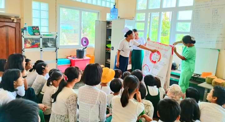 ရှေးဦးစွာ မြို့နယ်ကျန်းမာရေးဦးစီးဌာနမှ သွားနှင့်ခံတွင်းဆိုင်ရာ ဒေါက်တာယဥ်ယဥ်ဝင်းက သွားနှင့်ခံတွင်းအကြောင်း ကျန်းမာရေးသရုပ်ပြ ပညာပေးခြင်း၊ မိခင်ကလေး၊ ကျောင်းကျန်းမာ၊ အာဟာရဌာနမှ ဦးစီးအရာရှိ ဒေါ်နီလာအေးက မိုးရာသီတွင်ဖြစ်ပွားတတ်သောရောဂါများနှင့် အစာအာဟာရများအကြောင်း၊ မူးယစ်ဆေးဝါးနှင့် လိင်မှတစ်ဆင့် ကူးစက်တတ်သောရောဂါများအကြောင်း ဆွေးနွေးဟောပြောခဲ့သည်။ ဆက်လက်၍ ရွှေရချိုင်ကျေးလက်ကျန်းမာရေးဌာနခွဲမှ အမျိုးသမီး ကျန်းမာရေးဆရာမ ဒေါ်စမ်းစမ်းသိန်းက လိင်မှတစ်ဆင့် ကူးစက်တတ်သောရောဂါများနှင့် မိန်းကလေးများတွင်ဖြစ်တတ်သော ရာသီစက်ဝန်းများ အကြောင်းတို့ကို သရုပ်ပြပညာပေး ဆောင်ရွက်ခဲ့ကြပြီး ကျောင်းသား၊ ကျောင်းသူများအား သွားတိုက်ဆေးများပေးအပ်ကာ ကျန်းမာရေးစစ်ဆေးခြင်း လုပ်ငန်းများလည်း ဆက်လက်ဆောင်ရွက်ခဲ့ကြကြောင်း သိရသည်။