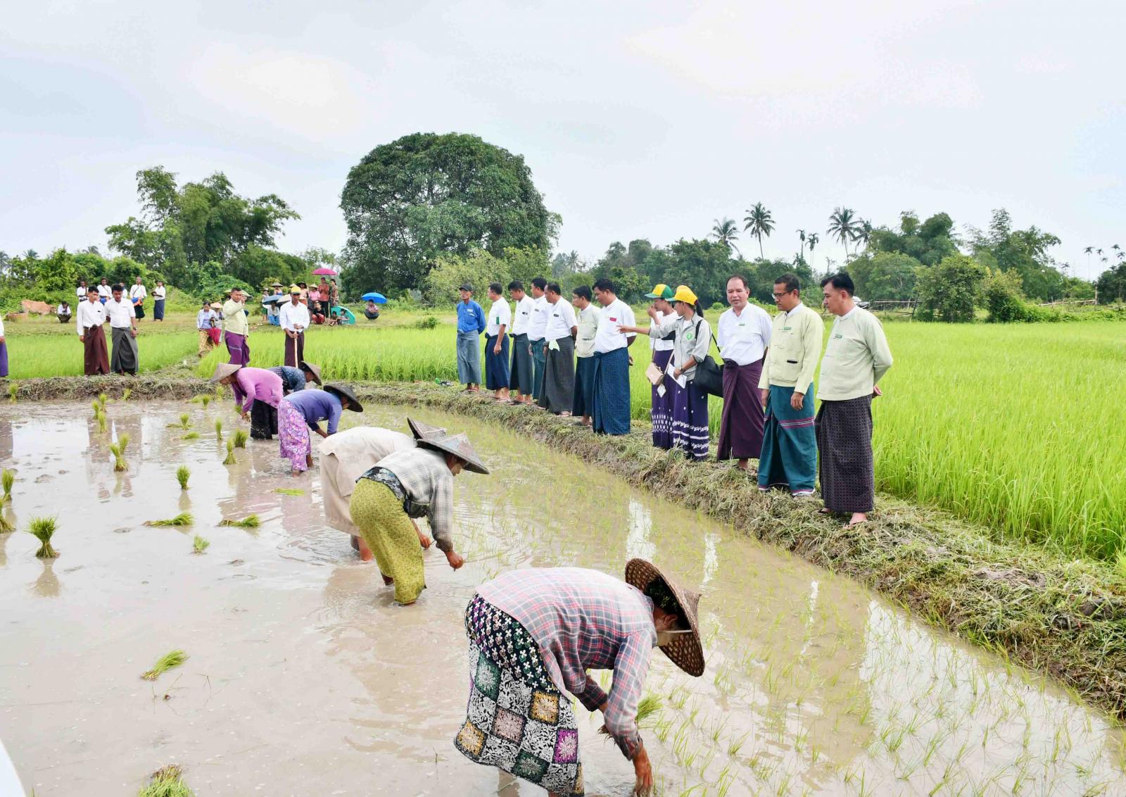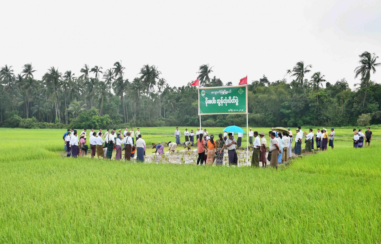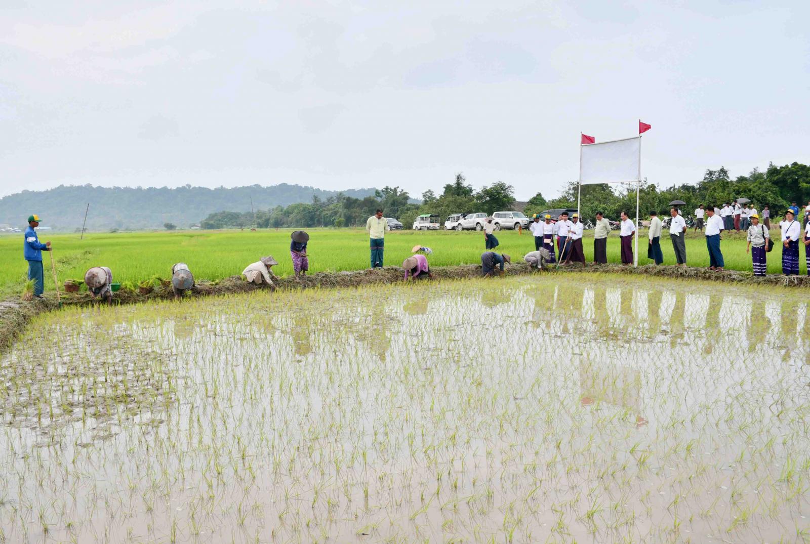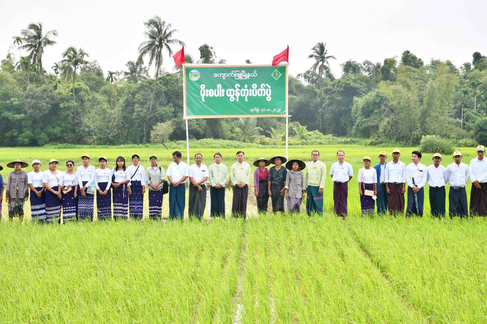 ရခိုင်ပြည်နယ်၊ ကျောက်ဖြူမြို့နယ်၊ ဂုံးချွိန်ကျေးရွာအုပ်စု၊ လယ်ဒါပြင်ကွင်း၊ ကွင်းအမှတ် (၄၅၁) တွင် ယနေ့နံနက်ပိုင်းက မိုးစပါးထွန်တုံးပိတ်ပွဲ အခမ်းအနားအား ကျင်းပပြုလုပ်ရာ ခရိုင်စီမံအုပ်ချုပ်ရေးအဖွဲ့ ဥက္ကဋ္ဌနှင့်အဖွဲ့ဝင်များ၊ ဆက်စပ်ဌာနဆိုင်ရာများ၊ စိုက်ပျိုးရေးဦးစီးဌာနမှ ခရိုင်/မြို့နယ် ဦးစီးမှူးနှင့်ဝန်ထမ်းများ ကွင်းဆင်းကြည့်ရှုအားပေးကြသည်။