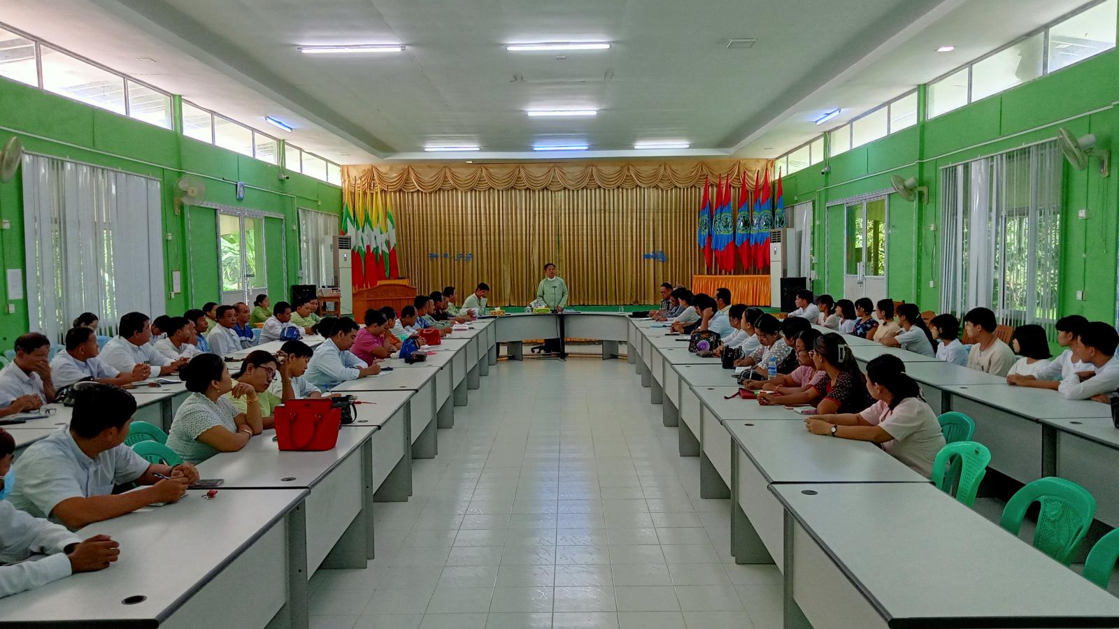 ရှေးဦးစွာ ဒုတိယခရိုင်အုပ်ချုပ်ရေးမှူး ဦးသန်းဝင်းက (၂၄)ကြိမ်မြောက် မြန်မာတိုင်းရင်းသားတို့၏ အဆို၊ အက၊ အရေး၊ အတီး ပြိုင်ပွဲ(ခရိုင်အဆင့်) အောင်မြင်စွာကျင်းပနိုင်ရေးအတွက် ပြိုင်ပွဲကျင်းပရေးကော်မတီနှင့် လုပ်ငန်းကော်မတီများ ဖွဲ့စည်းတာဝန်ပေးအပ်ပြီး ကော်မတီများအနေဖြင့် မိမိတို့လုပ်ငန်းကော်မတီများအလိုက် အကြံပြု ဆွေးနွေးတင်ပြကြရန်နှင့် ပြိုင်ပွဲအောင်မြင်စွာကျင်းပနိုင်ရေးအတွက် ကော်မတီအဖွဲ့များနှင့် ဌာနဆိုင်ရာတာဝန်ရှိသူများက ပူးပေါင်းပါဝင်ဆောင်ရွက်ပေးကြရန် ဆွေးနွေးပြောကြားခဲ့သည်။