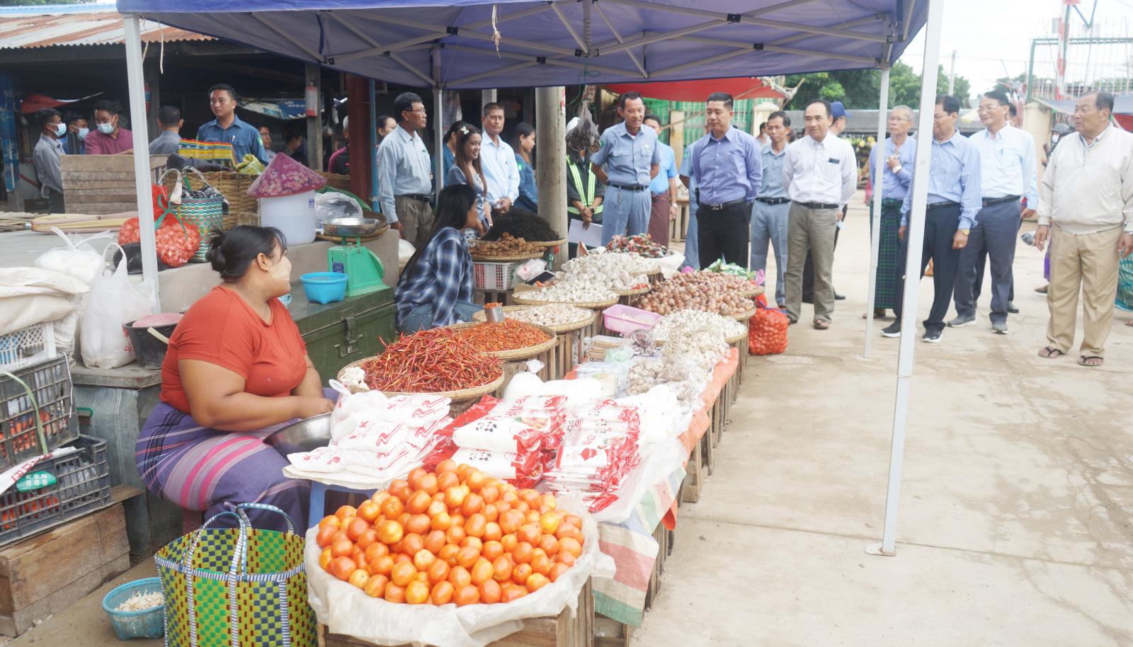ရှေးဦးစွာ ပြည်နယ်ဝန်ကြီးချုပ်နှင့်အဖွဲ့သည် သီရိမင်္ဂလာဗဟိုဈေးကြီး၌ ဆန်၊ အသား၊ ငါး၊ ပဲအမျိုးမျိုး၊ အခြေခံစားသောက်ကုန်များ၊ လူသုံးကုန်ပစ္စည်းအမျိုးမျိုးတို့ ရောင်းချနေမှုများအား လှည့်လည်ကြည့်ရှုခဲ့ပြီး ဈေးဝယ်ပြည်သူများနှင့် ဈေးရောင်းချသူများအား ရင်းရင်းနှီးနှီး နှုတ်ဆက်အားပေးစကား ပြောကြားခဲ့သည်။