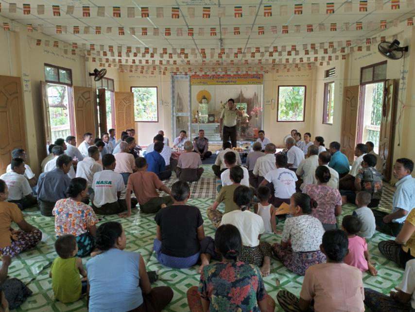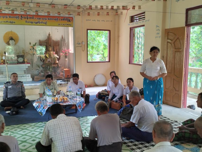 ရှေးဦးစွာ မြို့နယ်စီမံအုပ်ချုပ်ရေးအဖွဲ့ဥက္ကဋ္ဌ ဦးခင်မောင်သန်းက မိမိတို့ကျေးရွာအတွင်း နိုင်ငံရေး၊ စီးပွားရေး၊ လူမှုရေး၊ ပညာရေး၊ အုပ်ချုပ်ရေး၊ ကျန်းမာရေး၊ ဒေသဖွံ့ဖြိုးရေး၊ ဆက်သွယ်ရေး၊ စည်းရုံးရေးကိစ္စ စသည့် လိုအပ်ချက်များကို တင်ပြဆွေးနွေးနိုင်ရန် လာရောက်ကွင်းဆင်း ဆောင်ရွက်ခြင်းဖြစ်ကြောင်း ပြောကြားသည်။ ထို့နောက် မြို့နယ်စိုက်ပျိုးရေးဦးစီးဌာနမှ ဦးစီးမှုး ဦးကျော်ဝင်းက စပါးစိုက်ခင်းများတွင် ကျရောက်တတ်သော ပိုးမွှားအန္တရာယ်အကြောင်း သိကောင်းစရာများ၊ ပိုးမွှားအန္တရယ်ကျရောက်လာပါက ကာကွယ်နှိမ်နှင်းပုံများ၊ ထွန်ယှက်စိုက်ပျိုးပြီးချိန် သီးနှံအထွက်တိုးရန် သုံးစွဲရမည့်ဓာတ်မြေဩဇာများ၊ စပါးရိတ်သိမ်းပြီးချိန်၌ တစ်နိုင်တစ်ပိုင် မြေပဲ၊ မတ်ပဲ၊ မုန်ညှင်း၊ နေကြာတို့ကို စိုက်ပျိုးကြရန် တောင်သူများအား ရှင်းလင်းပြောကြားခြင်း၊ ဆက်လက်ပြီး မြို့နယ်လယ်ယာမြေစီမံခန့်ခွဲမှုအဖွဲ့မှ ဖြန့်ဝေသော “လယ်ယာမြေ လုပ်ပိုင်ခွင့်ရရှိရေးအတွက် သိရှိထားသင့်သောလယ်ယာမြေဥပဒေပုဒ်မများ ” အကြောင်း သိကောင်းစရာ လက်ကမ်းစာစောင်များကို ကျေးရွာသူ/ကျေးရွာသားများအား ဖြန့်ဝေပေးခဲ့သည်။