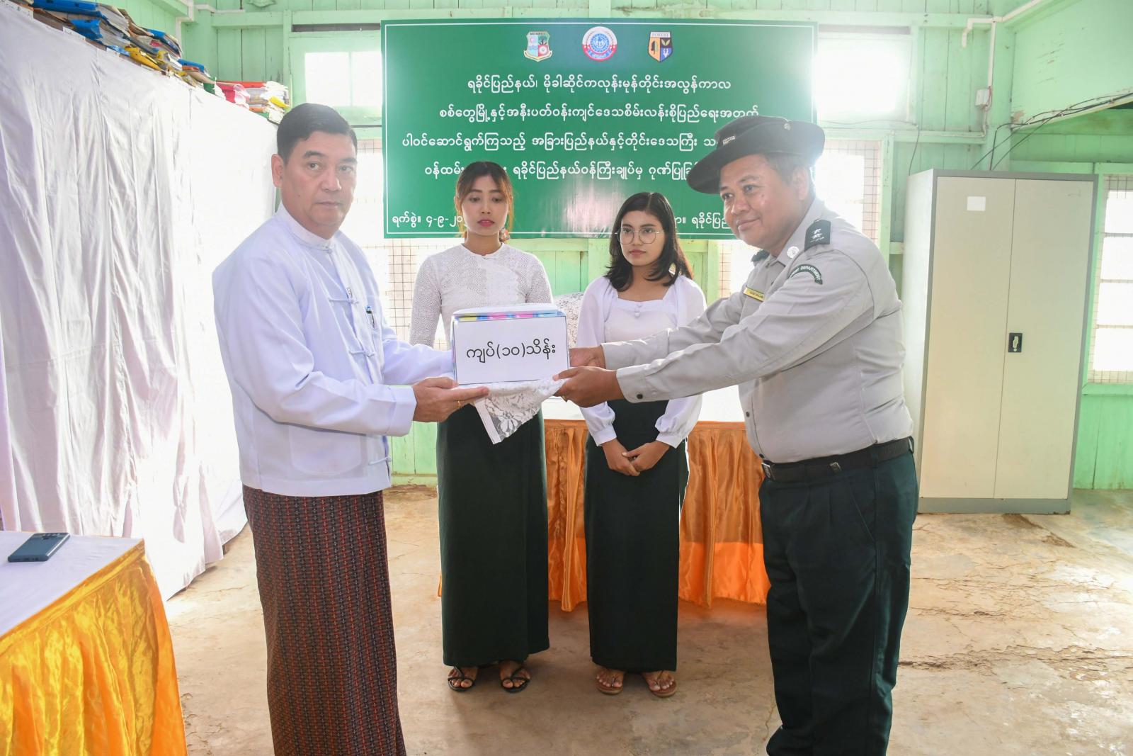 ဦးစွာ ပြည်နယ်ဝန်ကြီးချုပ်နှင့်အဖွဲ့သည် ပြည်နယ်သစ်တောဦးစီးဌာနရုံး၌ ကျင်းပသော ဆိုင်ကလုန်းမုန်တိုင်း (မိုခါ)အလွန်ကာလ စစ်တွေမြို့နှင့်အနီးပတ်ဝန်းကျင်ဒေသ စိမ်းလန်းစိုပြေရေးအတွက် သစ်ပင်များပြန်လည် စိုက်ပျိုးရေးလုပ်ငန်းများတွင် ပါဝင်ဆောင်ရွက်ခဲ့ကြပြီး မိမိတို့ဒေသများ၌ မူလတာဝန်များကို ပြန်လည်ထမ်းဆောင်ရန် စစ်တွေမြို့မှ ပြန်လည်ထွက်ခွာကြမည့် အခြားပြည်နယ်နှင့်တိုင်းဒေသကြီး သစ်တောဦးစီးဌာနမှဝန်ထမ်းများအား တွေ့ဆုံအားပေးစကားပြောကြားကာ ဂုဏ်ပြုချီးမြှင့်ငွေများပေးအပ်သည်။