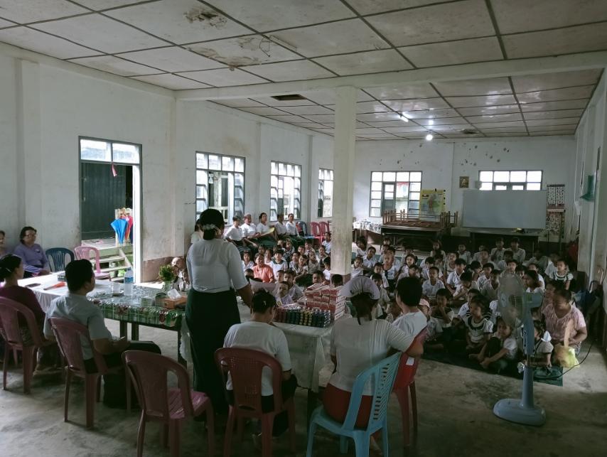 ထို့နောက် သွားနှင့်ခံတွင်းအထူးကုဆရာဝန် ဒေါက်တာကောင်းမြတ်ကျော်က အခမ်းအနားသို့ တက်ရောက်လာကြသည့် ကျောင်းသား/ကျောင်းသူများအား သွားနှင့်ခံတွင်း ကျန်းမာရေးစစ်ဆေးပေးခြင်း၊ ကျန်းမာရေးဌာနမှဝန်ထမ်းများက အရပ်အမြင့် တိုင်းပေးခြင်း၊ ကိုယ်အလေးချိန် ချိန်တွယ်ခြင်းတို့ကို ဆောင်ရွက်ပေးပြီး၊ မြို့နယ်အမျိုးသမီးရေးရာဥက္ကဋ္ဌနှင့်အဖွဲ့ဝင်များ၊ မြို့နယ်မိခင်နှင့်ကလေး စောင့်ရှောက်ရေးအသင်းဝင်များက သွားတိုက်တံနှင့်သွားတိုက်ဆေးများကို ပေးဝေခဲ့ကြောင်း သိရှိရသည်။