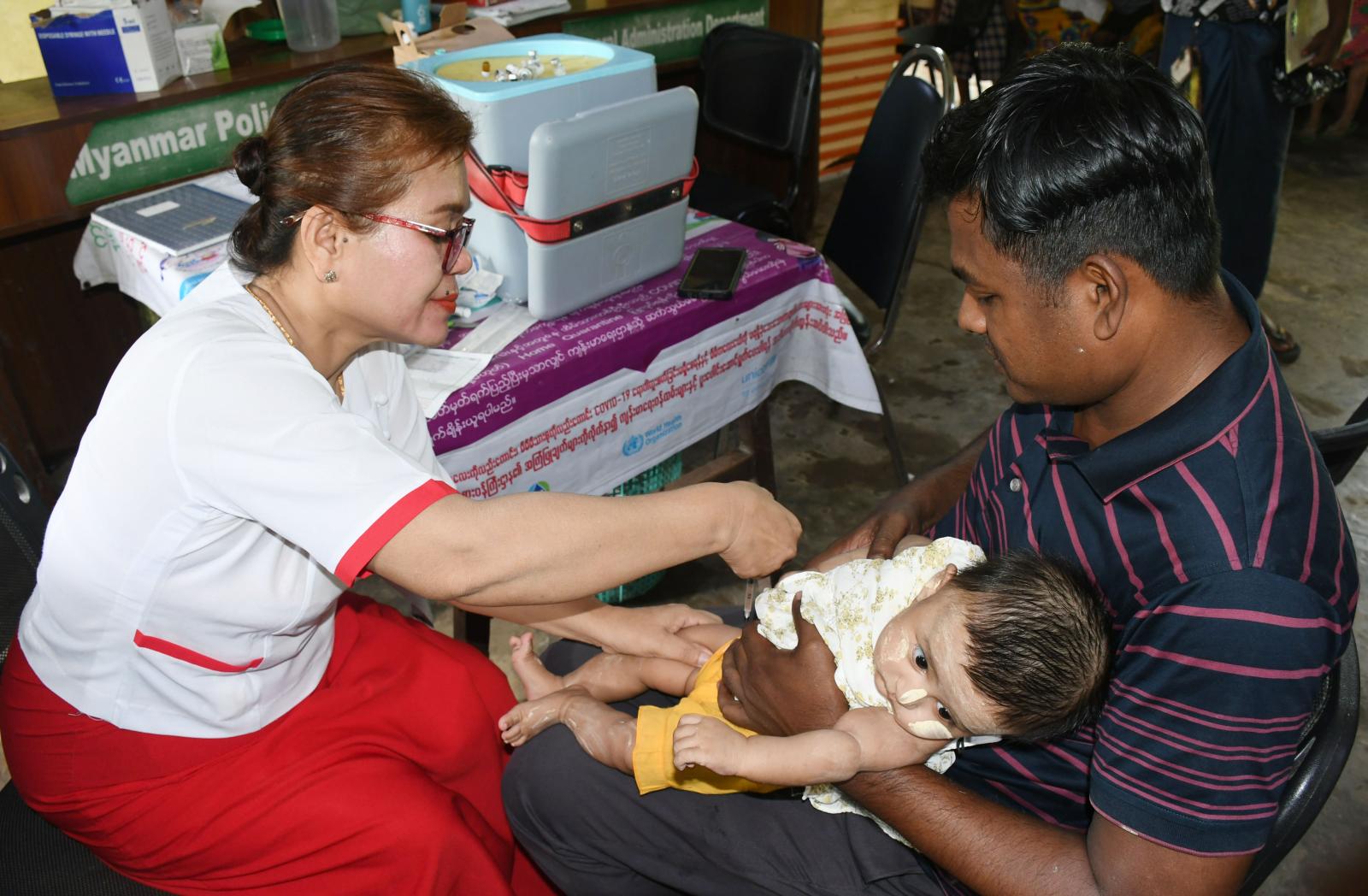 ရခိုင်ပြည်နယ်၊ မောင်တောမြို့၌ အသက်(၂)နှစ်အောက် ကလေးများနှင့် ကိုယ်ဝန်ဆောင် မိခင်များအား ပုံမှန်ကာကွယ်ဆေးထိုးနှံတိုက်ကျွေးခြင်းကို ယနေ့နံနက် ၉ နာရီအချိန် မိခင်နှင့် ကလေးစောင့်ရှောက်ရေးအသင်းအဖွဲ့ရုံးနှင့် သတ်မှတ်စုရပ်နေရာ ကျန်းမာရေးဝန်ထမ်းများက ကထိုးနှံပေးလျက်ရှိကြသည်။