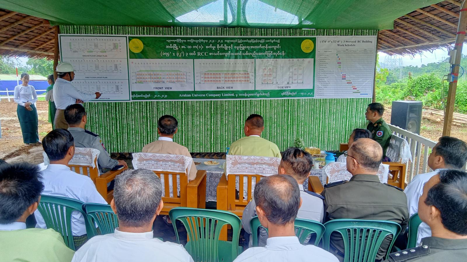 ကျောင်းဆောင်သစ်ဆောက်လုပ်ရန် ပန္နက်တော်တင်မင်္ဂလာအခမ်းအနားသို့ အနောက်ပိုင်းတိုင်းစစ်ဌာနချုပ် ဒုတိယတိုင်းမှူး ဗိုလ်မှူးချုပ် အောင်ကျော်မင်း၊ ခရိုင်စီမံအုပ်ချုပ်ရေးအဖွဲ့ဥက္ကဋ္ဌ ဦးအောင်ဇော်ထက်နှင့် အဖွဲ့ဝင်များ၊ မြို့နယ်စီမံအုပ်ချုပ်ရေးအဖွဲ့ဥက္ကဋ္ဌ ဦးစိုးမင်းထက်နှင့် အဖွဲ့ဝင်များ၊ ခရိုင်/မြို့နယ်အဆင့် ဌာနဆိုင်ရာ အကြီးအကဲများ၊ ခရိုင်ပညာရေးမှူးနှင့် ပညာရေးဝန်ထမ်းများ၊ ကျောင်းသားကျောင်းသူများ တက်ရောက်ကြရာ စက်မှု၊ စိုက်ပျိုးနှင့် မွေးမြူရေးအထက်တန်းကျောင်း (၁၇၄ ပေ - ၃၂ ပေ) ၃ထပ် RCC ကျောင်းဆောင်သစ်တည်ဆောက်ခြင်းလုပ်ငန်းအား Arakan Universe Co., Ltd. ကုမ္ပဏီမှ တာဝန်ရှိသူက ရှင်းလင်းဆွေးနွေးတင်ပြခဲ့သည်။