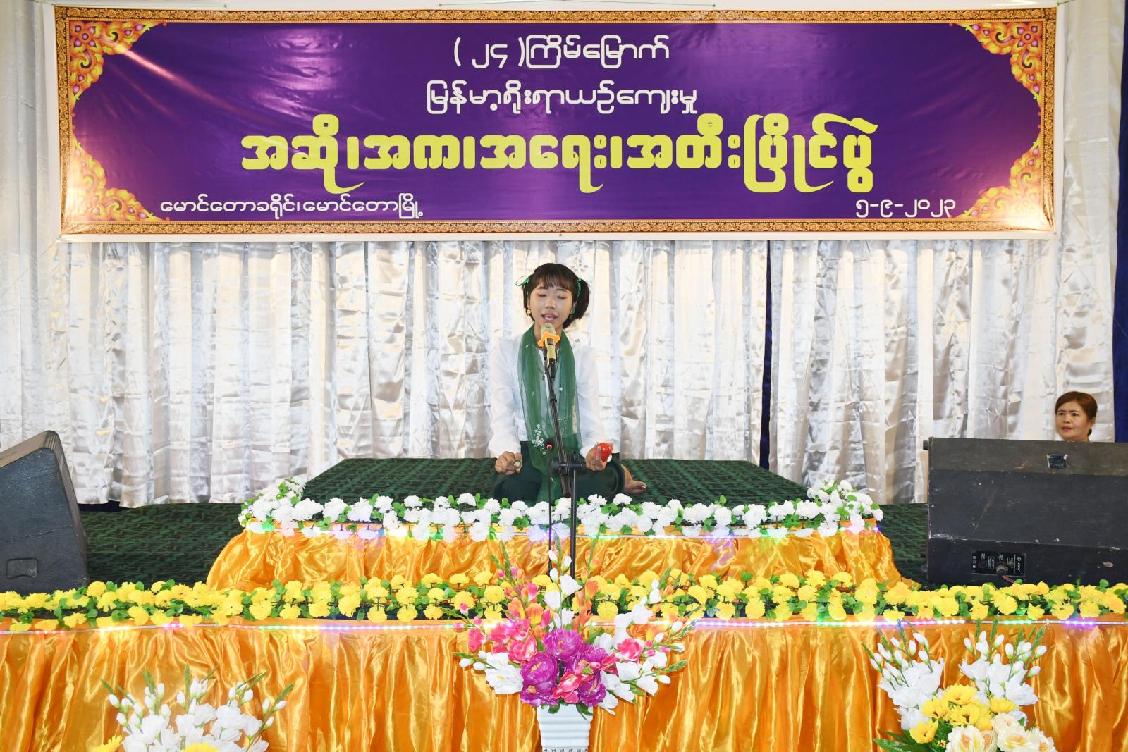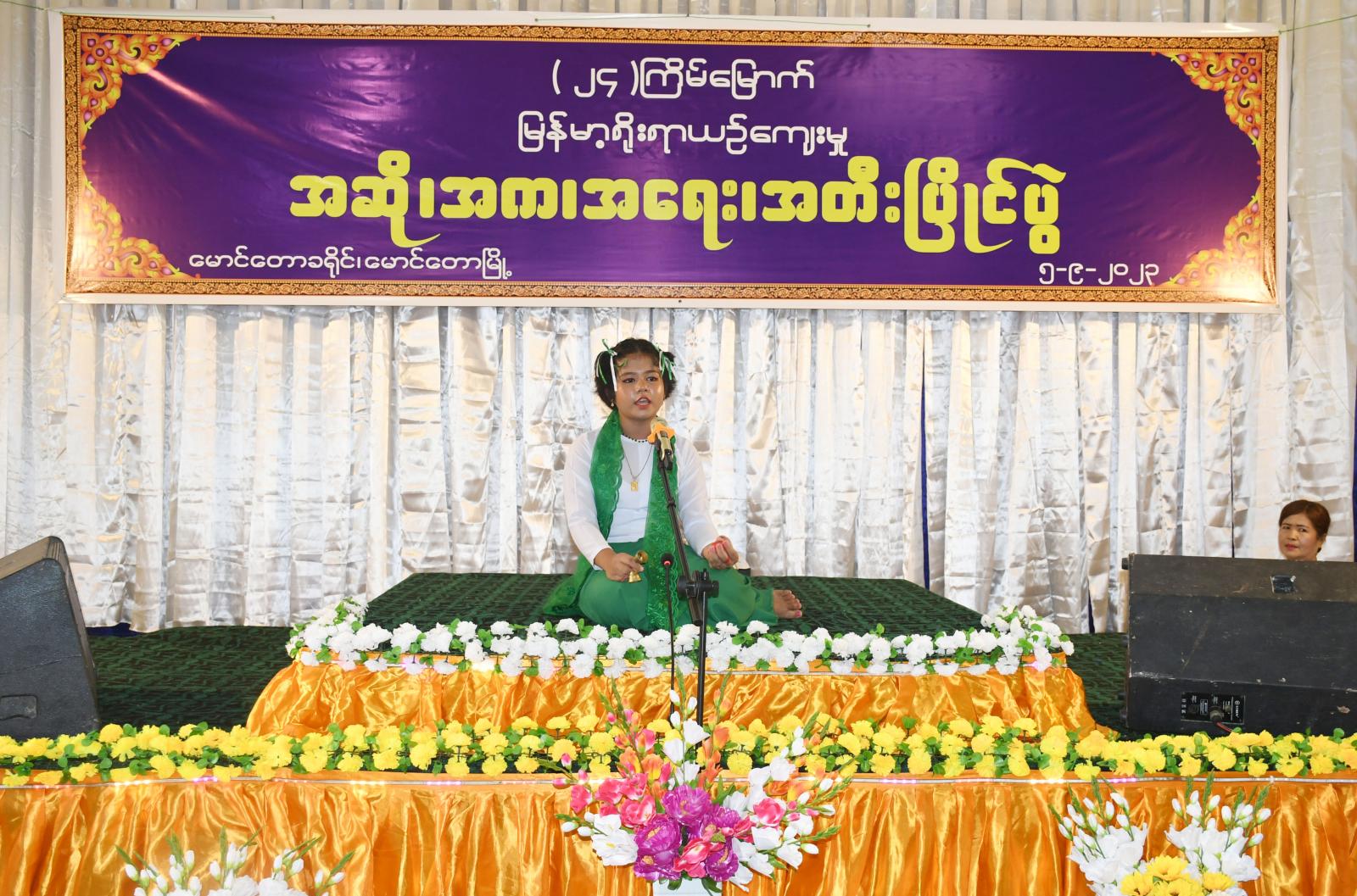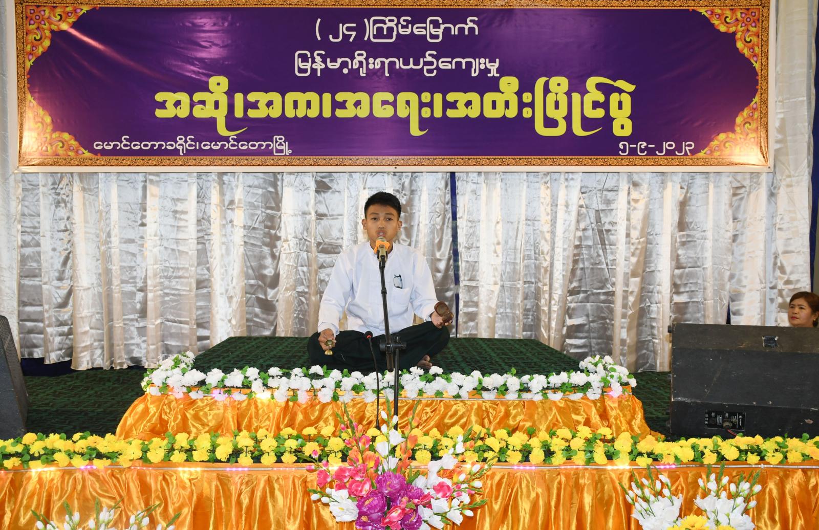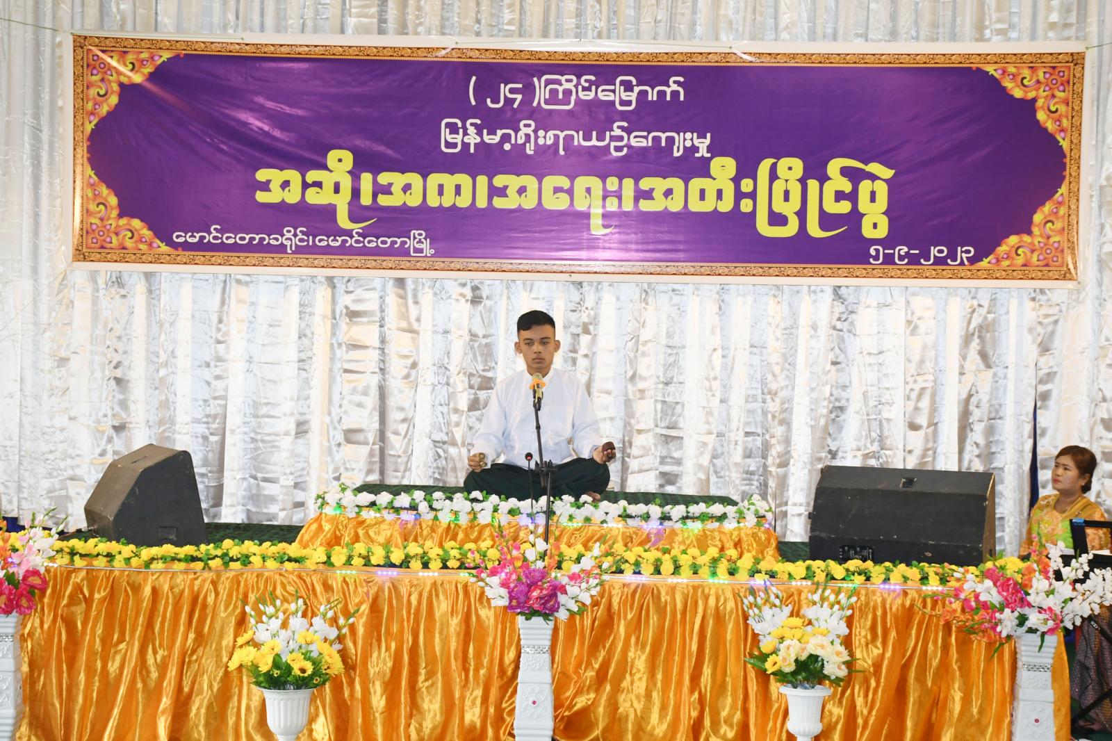 ရခိုင်ပြည်နယ်၊ မောင်တောခရိုင်၊ မောင်တောမြို့၌ ခရိုင်စီမံအုပ်ချုပ်ရေးအဖွဲ့မှ ဦးဆောင်ကြီးကြပ်ကာ ၂၄ ကြိမ်မြောက် ခရိုင်အဆင့် အဆို၊ အက၊ အရေး၊ အတီးပြိုင်ပွဲကို ယမန်နေ့နံနက် ၉ နာရီအချိန် သာသနာ့ဗိမာန်တော်ကြီးတွင် ကျင်းပပြုလုပ်ခဲ့သည်။