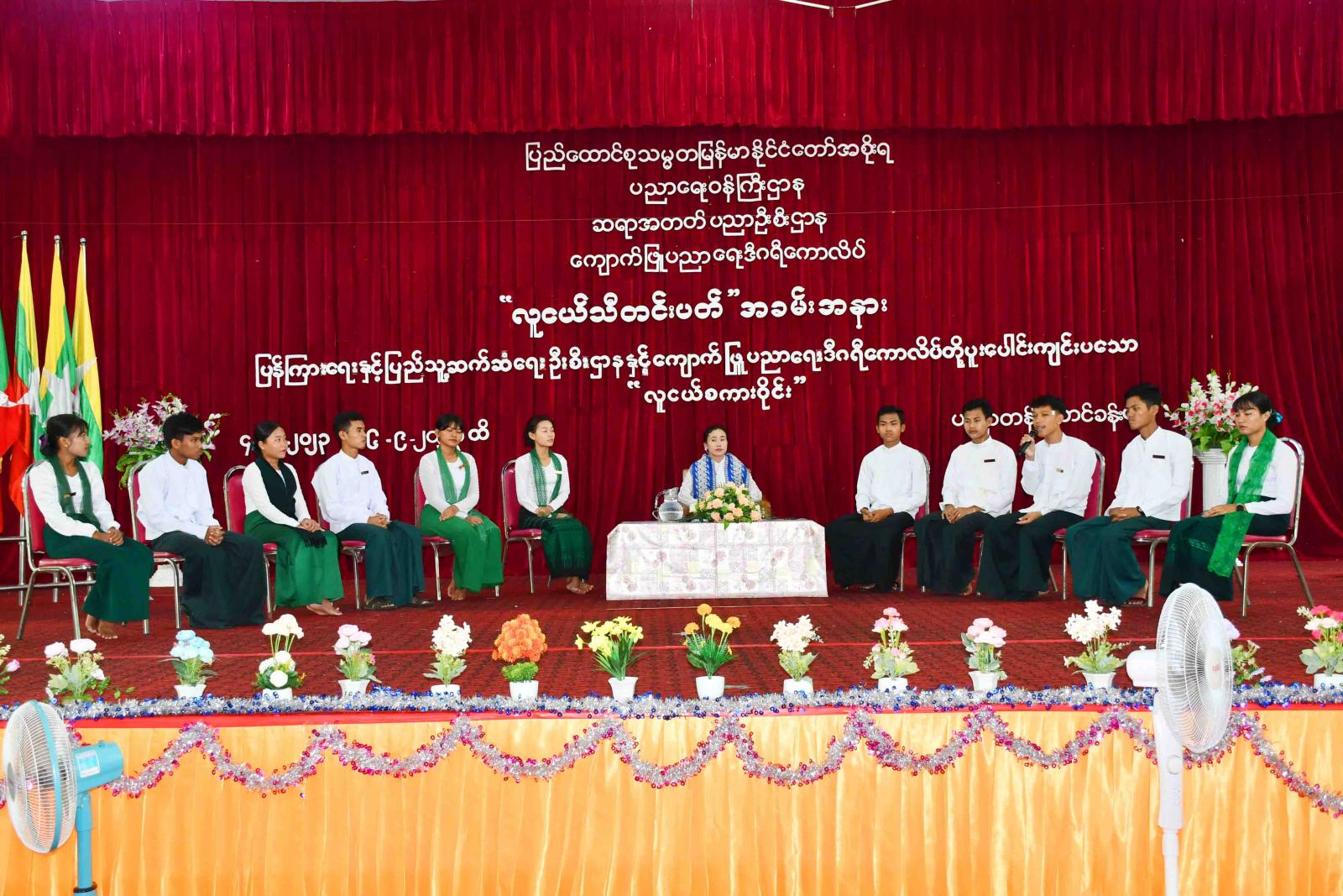 ပညာရေးဝန်ကြီးဌာန၊ ဆရာအတတ်ပညာဦးစီးဌာန၊ ကျောက်ဖြူပညာရေးဒီဂရီကောလိပ်၊ လူငယ်သီတင်းပတ် အခမ်းအနား၌ ပြန်ကြားရေးနှင့်ပြည်သူ့ဆက်ဆံရေးဦးစီးဌာနနှင့် ကျောက်ဖြူပညာရေးဒီဂရီကောလိပ်တို့ ပူးပေါင်းပြီး လူငယ်စကားဝိုင်းကို ယမန်နေ့နံနက်ပိုင်းက အဆိုပါကောလိပ်ရှိ ပညာတန်ဆောင်ခန်းမတွင် ကျင်းပပြုလုပ်သည်။