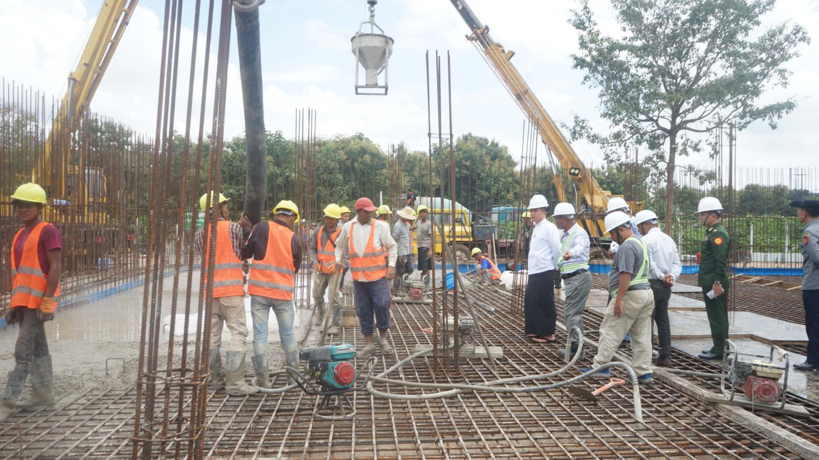 ထို့နောက် ပြည်နယ်ဝန်ကြီးချုပ်နှင့်တာဝန်ရှိသူများက လွိုင်ကော်မြို့၊ မိုင်းလုံးရေစက်ရုံရှိ အနှေးသဲရေစစ်ကန် တည်ဆောက်နေမှုအား ကွင်းဆင်းကြည့်ရှုစစ်ဆေးခဲ့ကြပြီး တည်ဆောက်ရေးလုပ်ငန်းများအား စနစ်တကျဆောင်ရွက်ထားသည်ကို တွေ့ရှိရပါကြောင်းနှင့် လုပ်ငန်းခွင်အန္တရာယ်ကင်းရှင်းရေးကို အထူးဂရုပြုကြရန် မှာကြားခဲ့သည်။