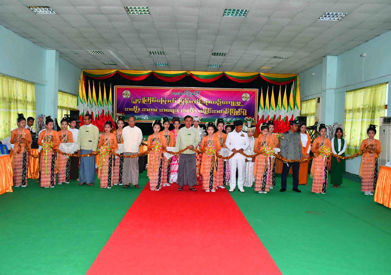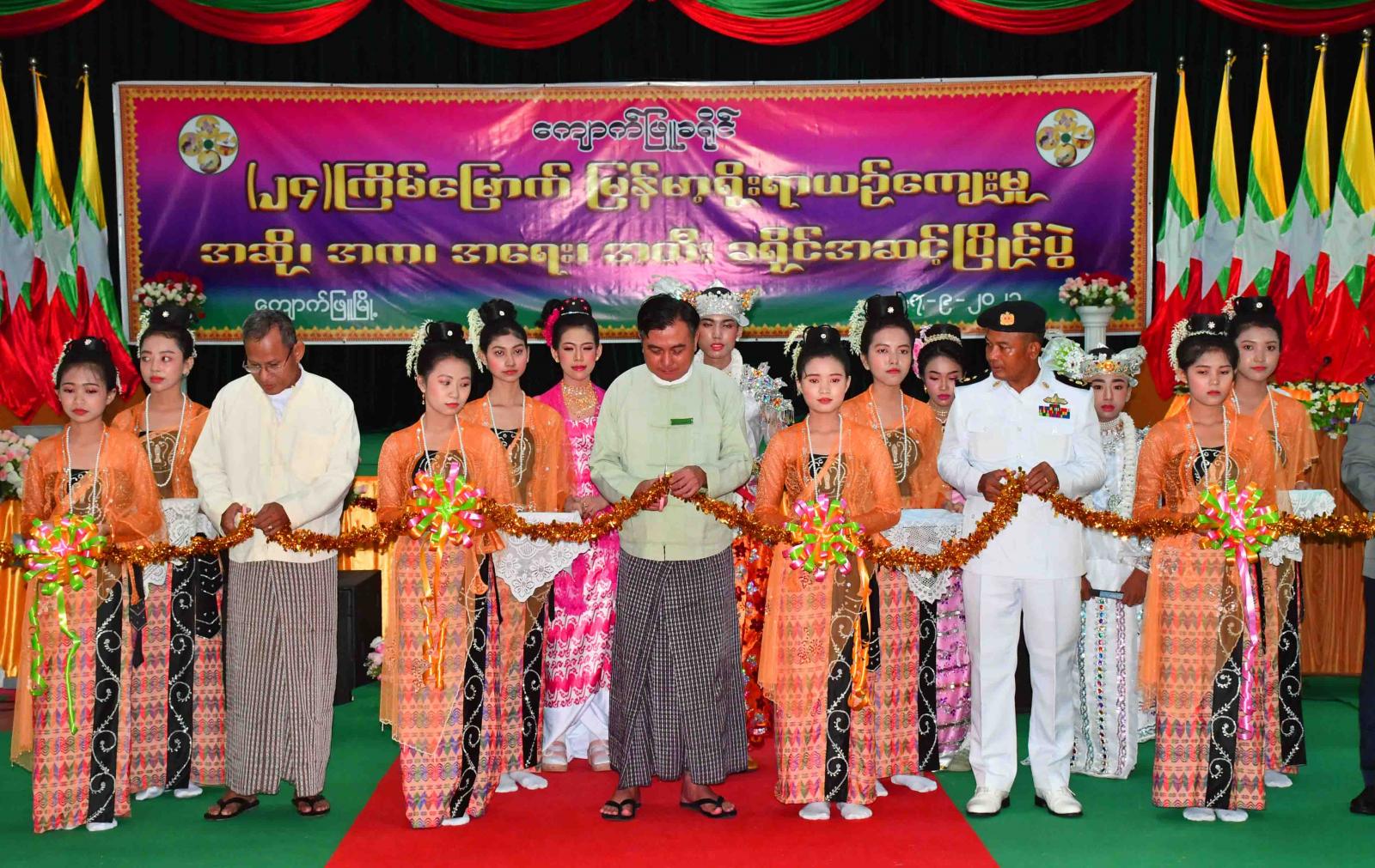 ရခိုင်ပြည်နယ်၊ ကျောက်ဖြူခရိုင်၊ ကျောက်ဖြူမြို့၌ (၂၄)ကြိမ်မြောက် မြန်မာ့ရိုးရာယဉ်ကျေးမှု အဆို၊ အက၊ အရေး၊ အတီး ခရိုင်အဆင့်ပြိုင်ပွဲကို ယနေ့နံနက်ပိုင်းက ကျောက်ဖြူမြို့၊ အစိုးရရပ်ကွက်ရှိ ရမ္မာဝတီခန်းမ၌ ကျင်းပပြုလုပ်ရာ ခရိုင်/မြို့နယ် စီမံအုပ်ချုပ်ရေးအဖွဲ့ဥက္ကဋ္ဌနှင့် အဖွဲ့ဝင်များက အခမ်းအနားအား ဖဲကြိုးဖြတ်ဖွင့်လှစ်ပေးသည်။