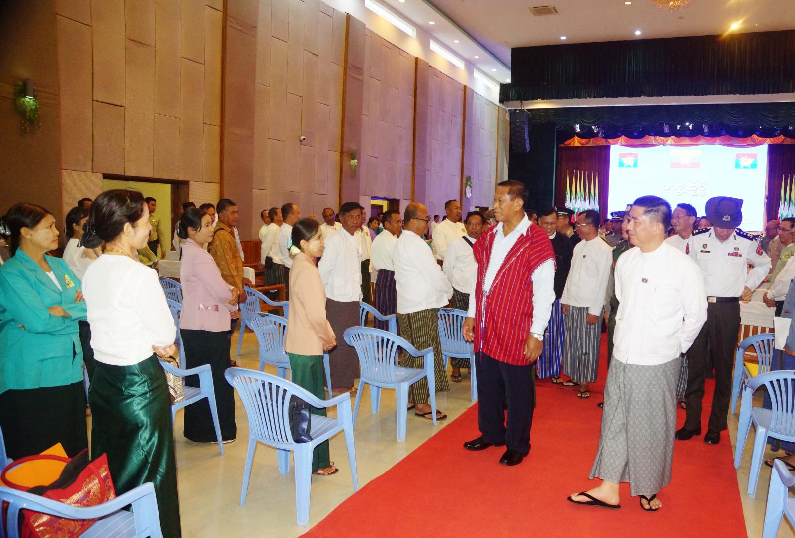 ရှေးဦးစွာ နိုင်ငံတော်စီမံအုပ်ချုပ်ရေးကောင်စီအဖွဲ့ဝင် ဦးပိုးရယ်အောင်သိန်းက အဖွင့်အမှာစကားပြောကြားရာတွင် နိုင်ငံတော်အစိုးရအနေဖြင့် မြို့ပြနှင့်ကျေးလက်ဖွံ့ဖြိုးမှု ကွာဟချက်ကျဉ်းမြောင်းစေရေး၊ ဟန်ချက်ညီညီ ဖွံ့ဖြိုးတိုးတက်စေရေးနှင့် ဆင်းရဲနွမ်းပါးမှု လျှော့ချရေးတို့ကို အထူးအလေးထားကာ ရှေ့လုပ်ငန်းစဉ်(၅)ရပ်နှင့် တိုင်းပြည်သာယာဝပြောရေး၊ စားရေရိက္ခာဖူလုံရေးအတွက် နိုင်ငံရေး၊ လူမှုရေး၊ စီးပွားရေး ဦးတည်ချက်(၉)ရပ်ချမှတ်ပြီး နိုင်ငံတော်၏ အမျိုးသားအကျိုးစီးပွား ဘက်စုံဖွံ့ဖြိုးတိုးတက်ရေးကို နိုင်ငံတော်စီမံအုပ်ချုပ်ရေးကောင်စီအနေဖြင့် အရှိန်အဟုန်မြှင့်တင် ဆောင်ရွက်လျက်ရှိကြောင်း၊ ပြည်နယ်ဖွံ့ဖြိုးတိုးတက်စေရေး၊ ပြည်နယ်အတွင်း တည်ငြိမ်အေးချမ်းရေးနှင့် တရားဥပဒေစိုးမိုးရေးအတွက် ပြည်သူများအားလုံးက ဝိုင်းဝန်းပူးပေါင်း ပါဝင်ဆောင်ရွက်ကြစေလိုကြောင်း၊ လူငယ်လူရွယ်များအား ပညာရည်မြင့်မားလာအောင် ဆောင်ရွက်ပေးခြင်းဖြင့် အနာဂတ်နိုင်ငံတော်အတွက် အားထားရမည့် လူ့စွမ်းအားအရင်းအမြစ်များ ရရှိလာမည်ဖြစ်ကြောင်း၊ လွတ်လပ်ပီးတရားမတသော ပါတီစုံဒီမိုကရေစီအထွေထွေရွေးကောက်ပွဲ အောင်မြင်စွာကျင်းပနိုင်ရေးနှင့် ဆန္ဒမဲပေးပိုင်ခွင့် ရှိသူအားလုံးမဲပေးနိုင်ရေးကို ပြည်သူများအားလုံးက ပူးပေါင်းပါဝင် ဆောင်ရွက်ကြစေလိုကြောင်း ပြောကြားခဲ့သည်။