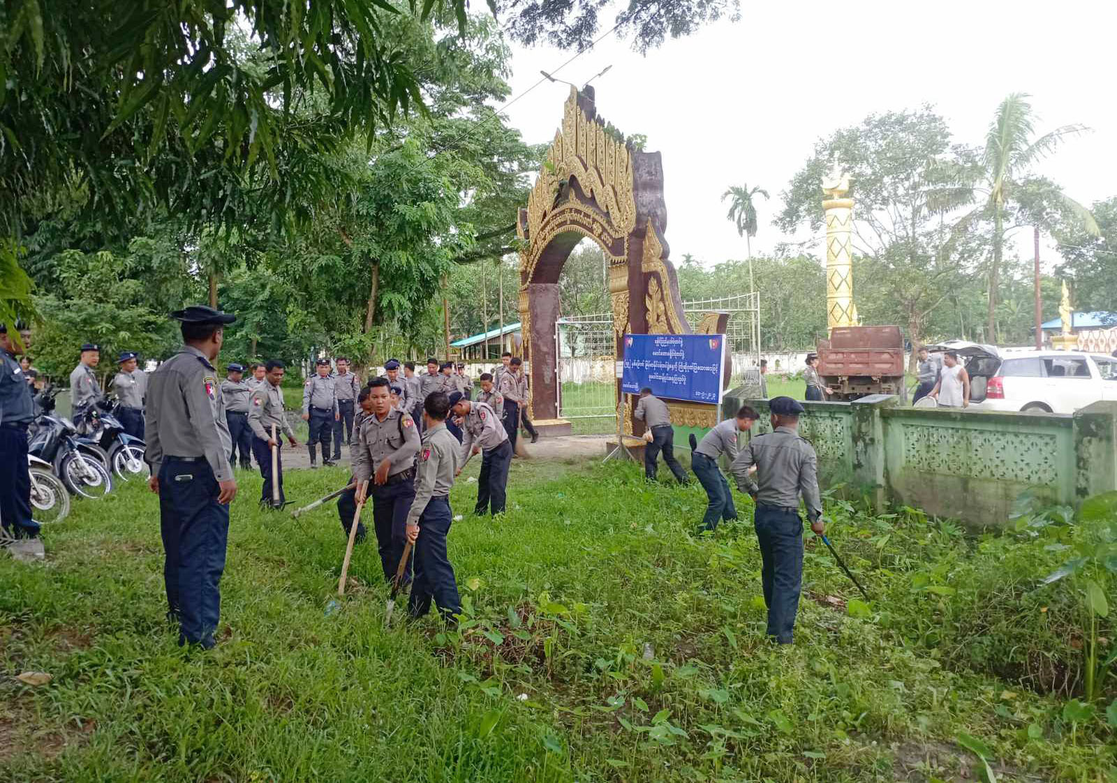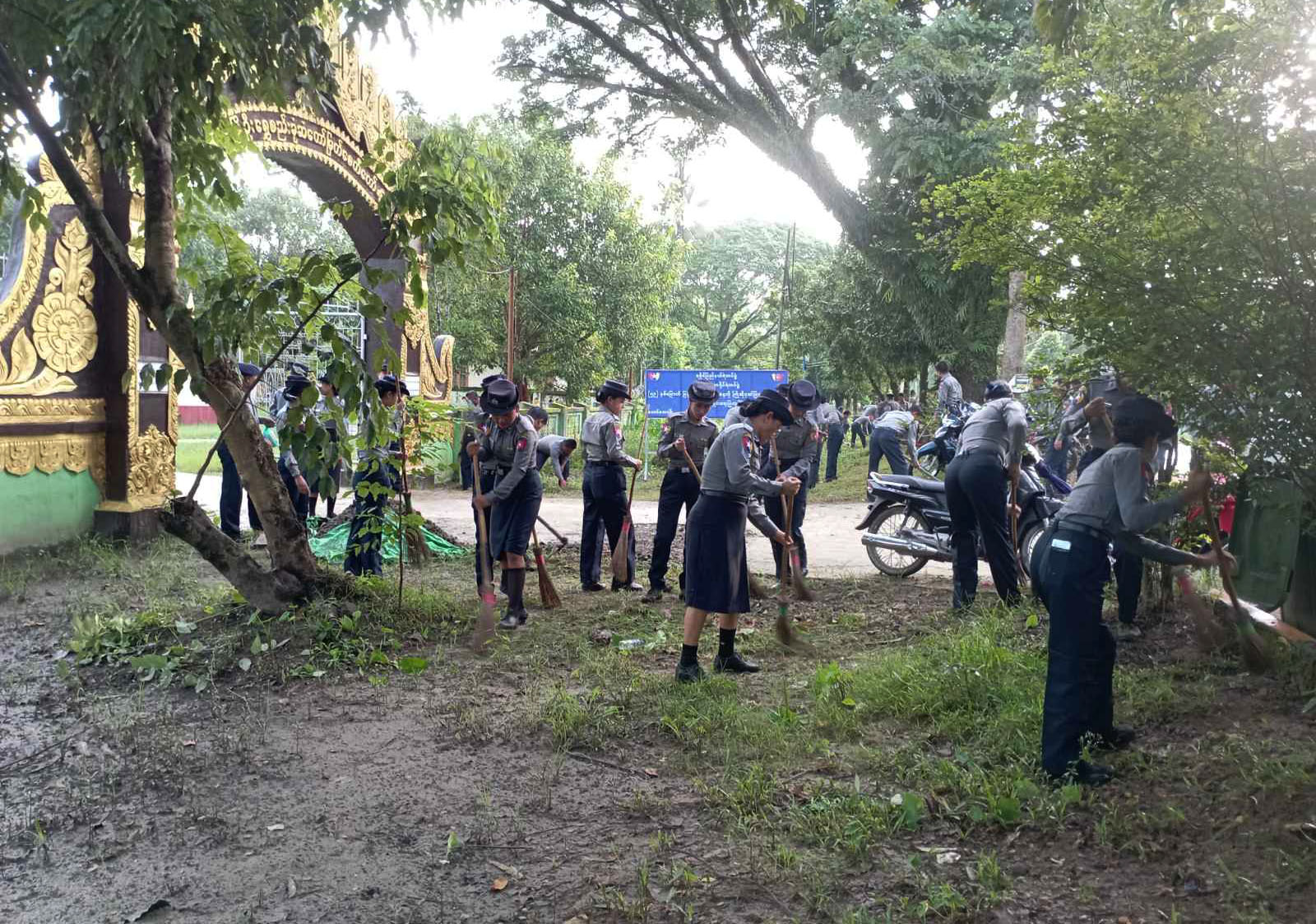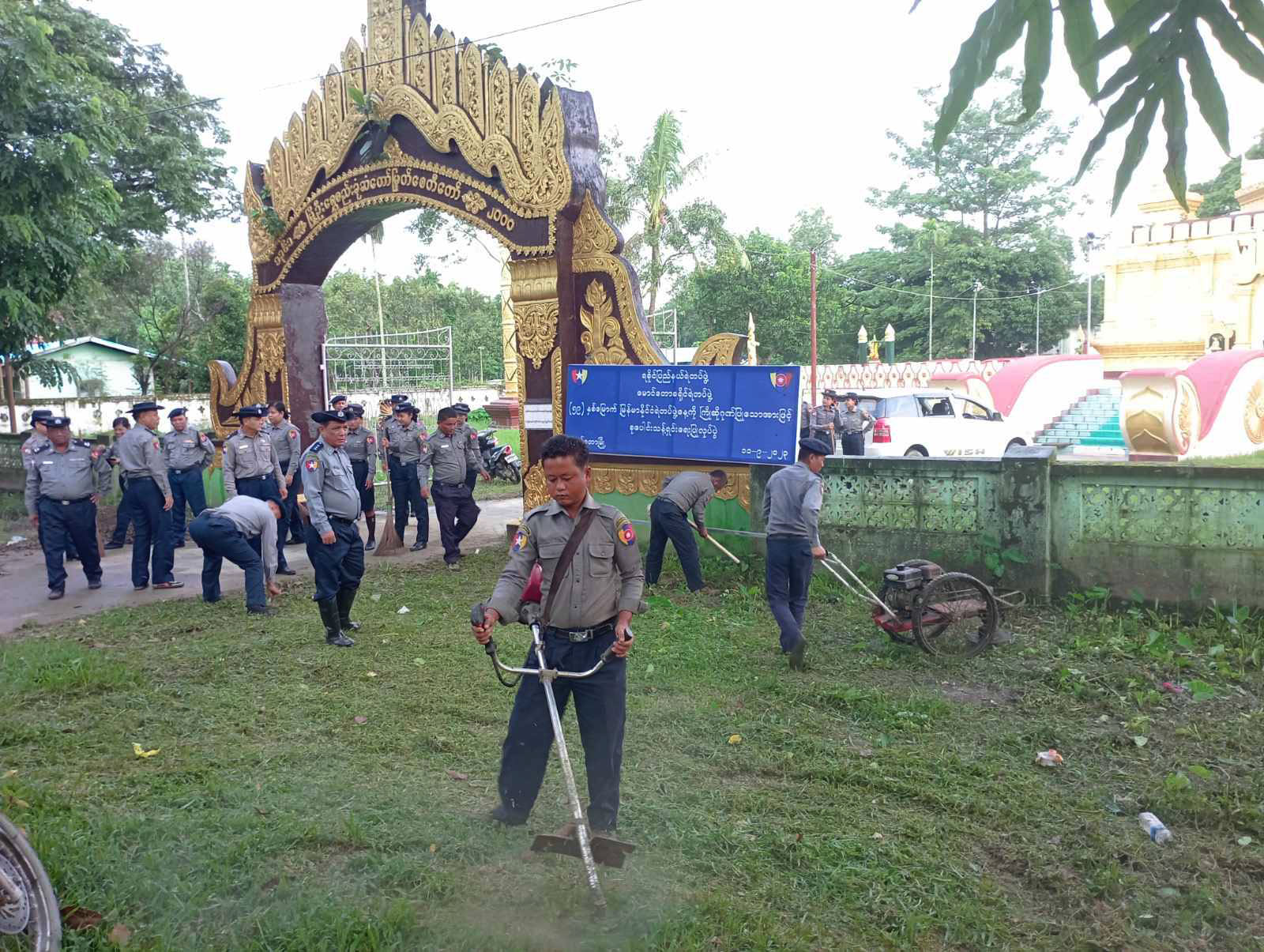 ထိုသို့ ဆောင်ရွက်ရာတွင် ခရိုင်ရဲတပ်ဖွဲ့မှူး ဒုတိယရဲမှူးကြီး ဦးကိုကိုလေး ဦးဆောင်၍ မြို့နယ်ရဲတပ်ဖွဲ့မှူး ရဲမှူး သိန်းနိုင်၊ အမှတ်(၄၆) မူးယစ်ရဲတပ်ဖွဲ့စု ရဲမှူးမြင့်သောင်း ၊ မြို့မရဲစခန်းမှူး ဒုတိယရဲတပ်ဖွဲ့မှူး ထွန်းနိုင်၊ လူကုန်တား ရဲတပ်ဖွဲ့ ဒုတိယရဲမှူး စံမင်း ၊ သတင်းရဲတပ်ဖွဲ့မှ ရဲအုပ် သန်းလှိုင်နှင့် ပူးပေါင်းရဲတပ်ဖွဲ့ ဝင်များက (၅၉)နှစ်မြောက် မြန်မာနိုင်ငံရဲတပ်ဖွဲ့နေ့အား ကြိုဆိုဂုဏ်ပြုသောအားဖြင့် မြို့ဦးရွှေစည်း ခုံစေတီတော်ကြီးတွင် ဘုရားဖူး ပြည်သူများ စိတ်အေး ချမ်းသာစွာ ဖူးမျှော်နိုင်ရေးအတွက် စေတီအနီးအနားရှိ အမှိုက်သရိုက်များ ကောက်ယူခြင်း၊ မြက်ပင် ၊ ပေါင်ပင်များအား ခုတ်ထွင်ရှင်းလင်းခြင်း ၊ စေတီတော် ရင်ပြင်အနီး တံမြက်စည်းလှဲခြင်း ၊ ဘုရား ပရဝဏ် အတွင်း/အပြင်များတွင် သန့်ရှင်းရေးပြုလုပ်ခြင်း ၊ စေတီတော်အနီးရှိ သုံးရေကန်အား ရေဆေး ကြောခြင်း ၊ ရေကန်အထဲရှိ အမှိုက်များအား ရှင်းလင်းခြင်းများကို စုပေါင်းဆောင်ရွက်ခဲ့ကြကြောင်း သိရသည်။