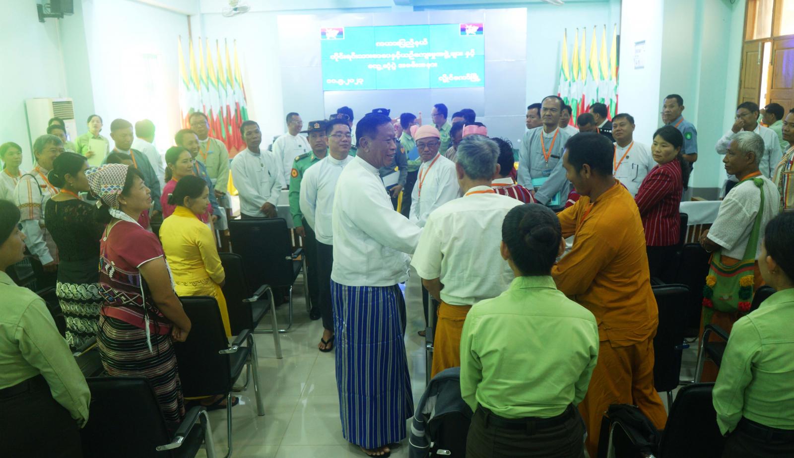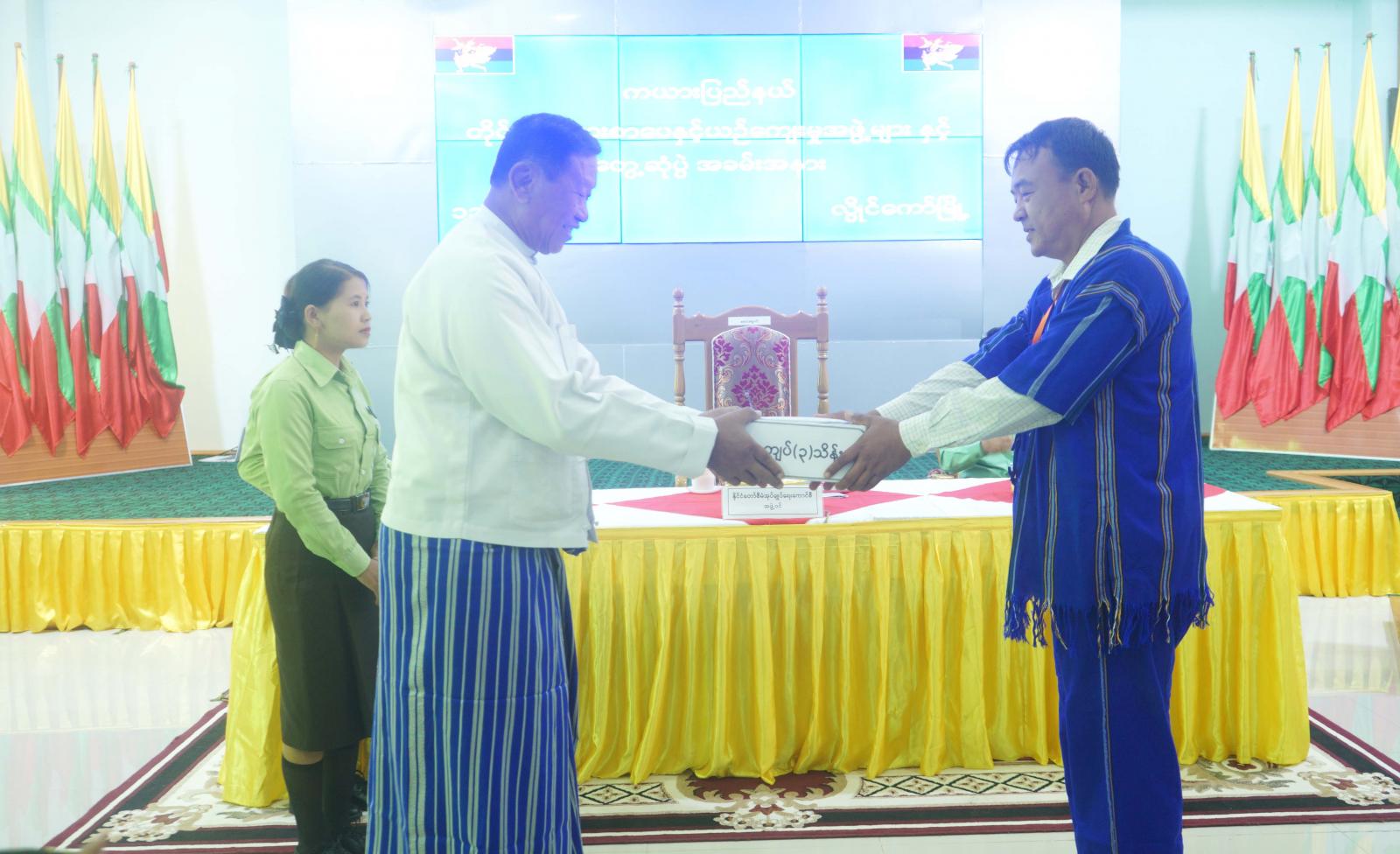 ထို့နောက် ပြည်နယ်ဝန်ကြီးချုပ်က တိုင်းရင်းသားအခွင့်အရေးဆိုင်ရာ ကိစ္စရပ်များအပေါ် ပြည်နယ်အစိုးရအဖွဲ့မှ ဖြည့်ဆည်းဆောင်ရွက်ပေးနေမှုများကို ဖြည့်စွက်ရှင်းလင်းပြောကြားခဲ့ပြီး နိုင်ငံတော်စီမံအုပ်ချုပ်ရေးကောင်စီအဖွဲ့ဝင်၊ ပြည်နယ်ဝန်ကြီးချုပ်၊ ဒေသကွပ်ကဲရေးမှူး၊ တိုင်းရင်းသားရေးရာဝန်ကြီးတို့က တိုင်းရင်းသားစာပေနှင့် ယဉ်ကျေးမှုအဖွဲ့ (၁၂) ဖွဲ့အတွက် ထောက်ပံ့ငွေများ ပေးအပ်ခဲ့ကြသည်။
