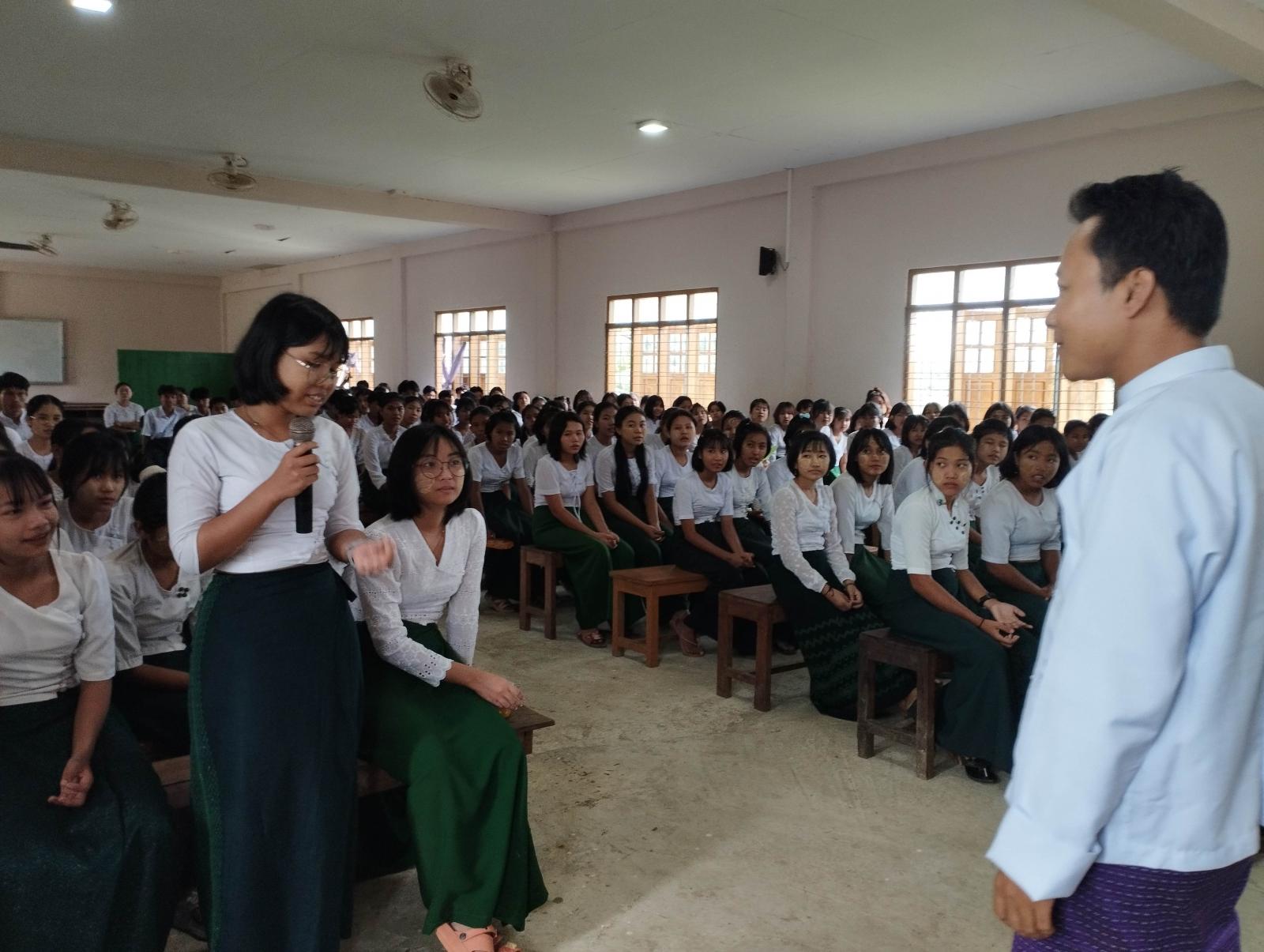 အဆိုပါဟောပြောပွဲတွင် မအီမြို့၊ ပြန်ကြားရေးနှင့်ပြည်သူ့ဆက်ဆံရေးဦးစီးဌာနမှ ဦးစီးမှူး မြို့ဦးစီးမှုဦးသက်နောင်ထွန်းက "လူငယ်နှင့်ပညာ”ခေါင်းစဥ်ဖြင့် ဟောပြောရာတွင် လူငယ်များ ကာယဗလ၊ ဉာဏဗလ၊ စာရိတ္တဗလ၊ မိတ္တဗလနှင့် ဘောဂဗလ ဟူသည့် ဗလငါးတန်နှင့် ပြည့်စုံရန် လိုအပ်ကြောင်း၊ ကျောင်းစာအပြင် ပြင်ပဗဟုသုတစာပေများကို ဖတ်ရှုရန်လိုအပ်ကြောင်း၊ သုတစာပေနှင့် ရသစာပေများကို ခွဲခြားသိရှိထားရန်လိုအပ်ကြောင်း ဟောပြောခဲ့သည်။ ထို့နောက် ကျောင်းအုပ်ဆရာမကြီး ဒေါ်မျိုးမြတ်မြတ်ခိုင်မှ ဟောပြောရာ၌ လူငယ်များတွင် အသိနှင့်ပညာသည် အရေးကြီးကြောင်း၊ လူငယ်များအနေဖြင့် အသိပညာ အတတ်ပညာပေါင်းစပ်ပြီး မိမိအကျိုး၊ နိုင်ငံအကျိုး၊ လူထုအတွက် အကျိုးပြုသည့်ဆောင်ရွက်ချက်များကို ပေးအပ်ရန်လိုအပ်ကြောင်း၊ အခုလိုလူငယ်များအတွက် အသိပညာပေး ဟောပြောပွဲများကို မိမိတာဝန်ထမ်းဆောင်နေစဉ် ကာလအတွင်း အလေးထား၍ ကြိုးစားဆောင်ရွက်ပေးသွာမည်ဖြစ်ကြောင်းပြောကြားခဲ့သည်။